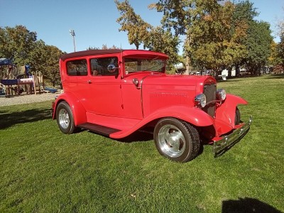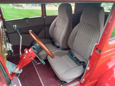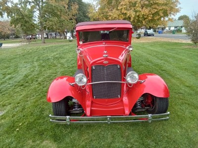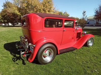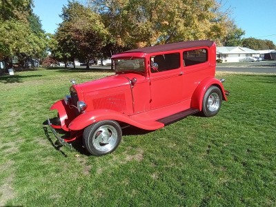 Up for sale is one nice little Ford Model A Street Rod. This Model A was built in Florida and now lives in Idaho. The build was done very well, and this little car drives nice. The chassis is an original Model A frame boxed with mustang front end, power rack and pinion steering with chrome upper and lower a-arms, and Power Disk brakes up front. The transmission is a 350 turbo and rear end is a Ford unit with chrome triangular 4 bar with chrome coil over for the rear suspension. The E-brake is a 9" pinion mount style mounted on the 3rd member. It is running a built 1989 Camaro 305 Chevy engine with Port fuel injection, block hugger headers with full length chrome exhaust, mufflers and tail pipes. A walker radiator to keep it cool and an inside switch is mounted in the dash to turn on the electric fans for parade cursing. (runs strong, drives nice and sounds good) The body has had a mild chop, about 3" and the chop was done very well. This is a steel bodied car with fiberglass fenders and nice front custom cover for the rack and pinion steering up front below the radiator. It also has a nice little gas door built into the body at the rear upper quarter panel for fuel. The fuel tank is in the inside of the body behind the rear seat and a new fuel pump has just been installed in the tank for the fuel injection. A nice little luggage rack is on the rear for your cooler or your camping chairs or both. All glass is new and the power door windows work as they should. The red paint is nice, and the car is Stright but there is a couple of very small cracks at the top of the cowl posts, where the posts meet the top. (please look at all pictures closely) Also one rear fender has a small crack where the fender bolt connects the fender to the fender brace. The top is done in nice convertible top material that matches colors with the rest of the car and looks great. The interior is newer as this owner has just had it done by well-known upholstery shop and it looks very nice. The headliner, carpeting, door panels and seats are done in matching colors that add to the overall look. The car has Vintage Air and heat, tilt steering column, cruise control and nice gage set that all work well and look great in the beautiful wood dashboard with the Vintage air controls and radio for toons. (this interior is very nice) The car is running new tires on cool "Boyd Specialties" aluminum wheels. (This is a very nice running and driving car) I'm listing this beautiful Little Model A for my friends, and I will take all questions to them.