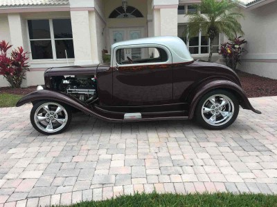 This 1932 Ford 3 Window Coupe is a restomod with updates to the exterior, interior and drivetrain. The vehicle runs great and is mainly used for weekend drives.