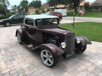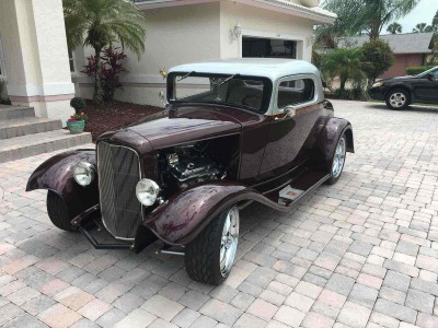 Ford Classic 3 Window coupe, Fiberglass Body, 400 Auto Trans, Air Conditioning, gm 400 cu in V8, Dart aluminum heads w/roller rockers, Edelbrock Alum Intake w/ Holley 750 dual pump, GM400TH TRANS, Flowmaster stainless exhaust w/electric cutouts, four wheel power disc brakes, Shelby American Special Edition wheels, Custom leather interior, Chrome tilt steering column, keyless locks and power windows, Auto Meter gauges. Custom Paint, Running boards & much more.