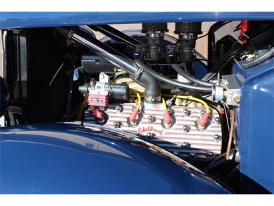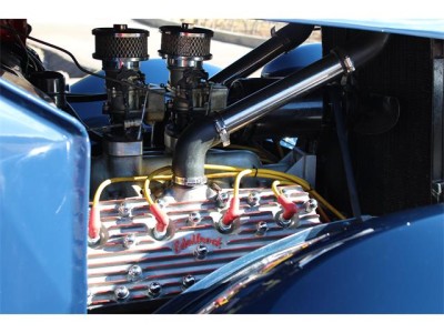 The Coupe is powered by a 24 stud Ford flathead with Edelbrock finned aluminum heads, Offenhauser two-deuce intake, twin Stromberg 81’s, Fenton cast iron headers, dual exhaust, Smitty’s mufflers and Mallory electronic ignition.