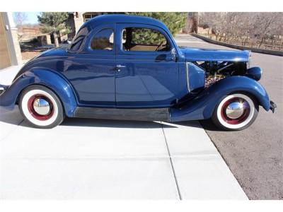 This sale is for a 1935 Ford Five-Window Coupe. It is a great driver, cruises 70 MPH on the highway and is a real head-turner. The coupe is all steel, finished in Washington Blue with maroon-painted wheels and wide whites