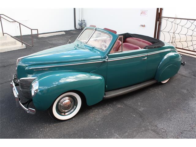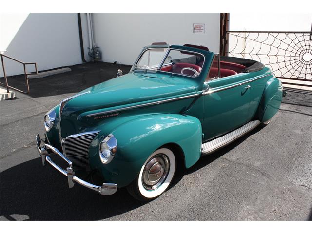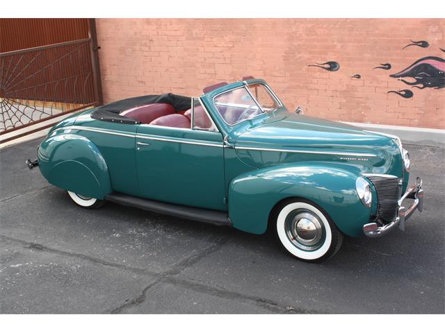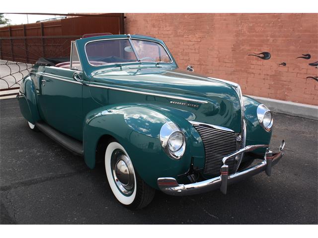 Beautiful and rare 40 merc Convertible mildly customized with performance upgrades resulting in the ultimate 50's style cruiser. Solid original car that was fully restored years ago. Gorgeous show quality paint and body in "Surf Blue." Very straight panels with excellent body gaps throughout. Paint is fully sanded and buffed for a mirror finish. Still shows great with only little imperfections here and there from use. All chrome and stainless was restored at time of restoration. Fender skirts are removeable if you prefer that look. Interior shows great in Oxblood red with a tan Canvas power top. A custom Banjo steering wheel was added and gives more seating room. Power top works great and top is in good condition with no holes but shows some age. Top has a black canvas boot that looks great installed. The Merc flathead V8 has been upgraded with fully polished Offenhauser heads and dual stromburg intake, MSD electronic ignition, and Reds Headers with full dual exhaust. The 3 speed transmission shifts great and the Hydraulic brakes stop the car well. Rolls on Radial wide whitewall tires. car has a slightly lowered stance for the 50's traditional custom look. The complete wiring harness was replaced with a new factory correct cloth bound harness. All of the gauges work well. Great cruiser that always draws a ton of attention at the shows. 40 Mercs are super cool and not often seen in the rare convertible body style. Ready to enjoy!
