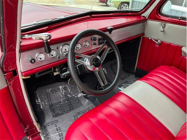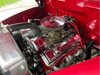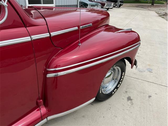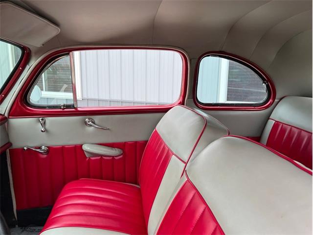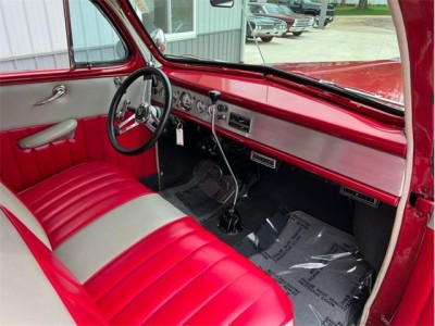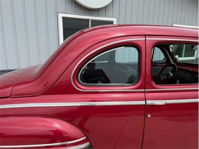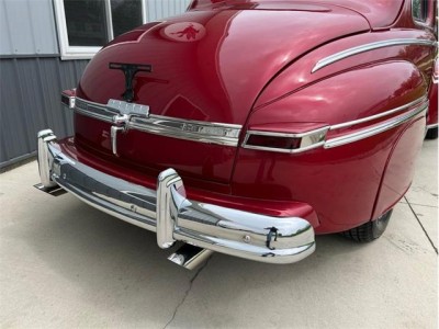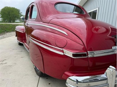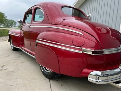 1947 Mercury Eight Restomod Coupe, completing a classic look with some modern performance and one killer stance. Powered by a 350 C.I. Chevrolet V8 topped by a Weber 4-barrel carburetor, this 47 sure is a lot of fun to drive. Torque gets to the pavement through a 3-speed automatic transmission, allowing for shifting thats nice and smooth. The exterior maroon paint looks gorgeous laid out over bodylines that are laser-straight and rock-solid, having been buffed to a brilliant shine. The interior is just as nice, featuring custom two-tone gray and red vinyl bench seats that also happen to be very comfortable. This 47 Merc has plenty of options, including power steering, ice-cold Vintage Air A/C, an aluminum radiator with pusher fan, aftermarket headers, a custom interior, a tilt steering column, a Grant aftermarket steering wheel, a custom aftermarket gauge cluster and dashboard, a custom shifter, tire skirts, and a sweet-sounding dual exhaust system. The car rides on a striking set of 15" chrome wheels over some Delta GT RWL tires for a truly classy look! This 47 Mercury has a great stance, and it runs down the road wonderfully. It is sitting in our showroom now, looking for a new driver. Why dont you give it the chance it needs to get back out on the road?
