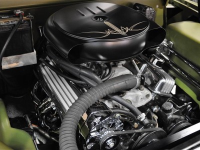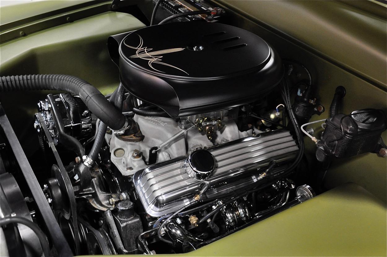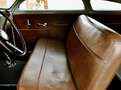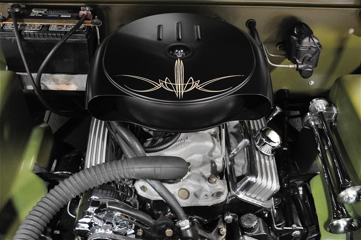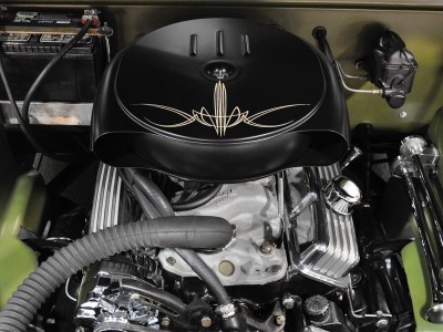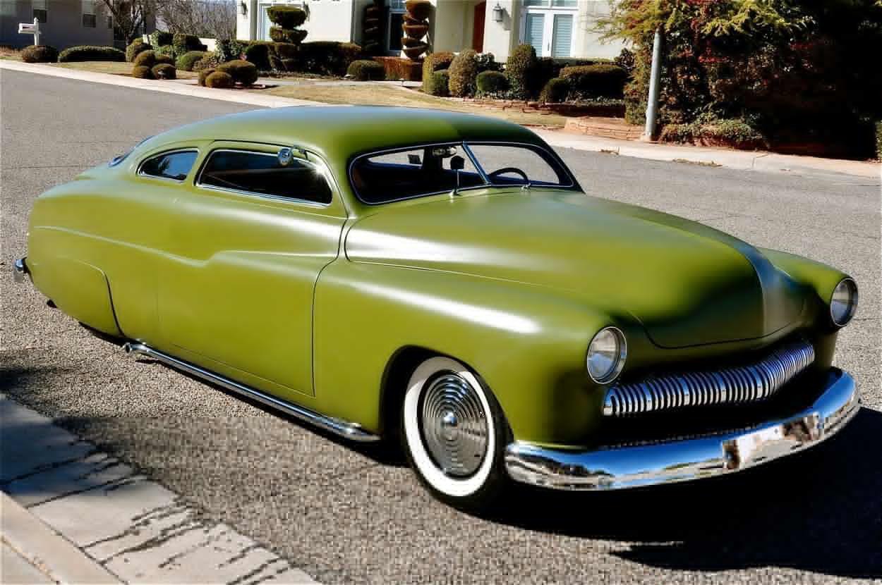 This 1950 Mercury Coupe is very well known worldwide and its history is very special indeed. After sitting in a field in Idaho since the early 1960’s, painter/illustrator/graphic designer Max Grundy, acquired this the Mercury Coupe, and started what was to become a 13 year venture of building his ‘dream’ car. He was 19 years old at the time, and always dreamed of building a custom Mercury, as his father had done when Max was just a little boy. When he first got the Merc, it had very faint lettering on the jockey box that read ‘Lonely Boy’, a name that stuck, hence the cool logo with the candle burning at both ends. Anyway, Max, with the help of his father and brother, started chipping away at the Merc immediately after getting it home, but there was only so much they could do with their limited experience, so it was decided to take the Merc to Bo Huff in Dragerton, Utah to get the body work started. After Bo did the initial chop, it sat in Max’s parents garage in Utah for another five years before Max brought it back to Southern California to finish what he had started. Max took his Merc to Aaron Valencia, who completed the bodywork and along w/ Max, turned Max’s car into one of the meanest Kustom Mercs on the planet! She was chopped 5.5”, nosed, decked, everything was shaved, and ’54 Ford frenched headlights were added. She was then finished in an ultra-cool shade of Military Matte Green, which gives this car that ominous appearance like no other. Pop open the door and you immediately notice that the Military vibe carries over into the interior, with the bench seat finished in an Army brown style w/ Battleship Grey dash & upper doorframes. If you’ve ever seen Max Grundy’s work, then you know that much of his art has a WWII theme, which he carried over while designing this 1950 Mercury Coupe. The interior qualities match the exterior perfectly, with its colors & design very much thought out ahead of time. The Battleship Grey dash was customized beautifully and has an aircraft feel that is impossible to deny. Interior features include: full set of Classic Instruments gauges, Aircraft type switches & Riveted Panels, ’55 Ford Steering Wheel, Hand-Built Steering Column, Genie 23” Shifter w/ Custom Shift Knob, Original Heater (functional) and ‘Lonely Boy’ logo artwork on glove box. Again, the interior matches the one-of-a-kind exterior perfectly. All of the gauges, lights, blinkers, etc., are in perfect working order. Sitting on a 1972 Pontiac GTO chassis, w/ GTO suspension, steering & brakes, this Mercury Coupe drives like a dream! Powered by a 400ci SBC motor featuring: Cal-Custom Finned Valve Covers, Chrome Block Hugger Headers, Cadillac Air Cleaner, Edelbrock Intake Manifold, Edelbrock 600 cfm Carburetor, Chrome Alternator and custom built Aluminum Radiator w/ Dual Fans, she performs as good as she looks! The 400 SBC is linked to a TH400 3-Speed Automatic Transmission which shifts super smooth & crisp with no unwanted noises whatsoever. She fires up instantly, settling into a nice smooth idle, and she runs & drives beautifully in every way. The 400ci SBC provides plenty of power & torque, making the car is an absolute BLAST to drive, and the lake pipes are completely functional & sound incredible! In fact, if you look at the Mooneyes Catalog, you will find the ‘Lonely Boy’ featured in the lake pipe section. This Merc also has the perfect stance, sitting on 15” steel wheels with Mooneyes Starburst Discs wrapped in Coker Classic Whitewall tires. Of course, she’s got an Air Ride system in the rear, so you can completely control where you want her to sit at all times. From any angle, whether it’s day or night, this Chopped Merc looks perfect, period. This is a very rare opportunity to own a very special 1950 Mercury Coupe that has been owned and customized by some of the biggest names in the Kustom Kulture world. It has been painted and/or drawn by some of the most well-known Automotive Artists on the planet, and has been recognized as one of the prolific 1950 Mercury Coupes on earth! There is a plethora of information on the Internet regarding this very special car; simply google ‘Max Grundy Mercury’ and you’ll see what I mean. As a topper, several of the original paintings will also be included in the sale. If you have been searching for a one-of-a-kind classic car that is unlike any other out there, and one with a very unique history, then you have certainly found your car!