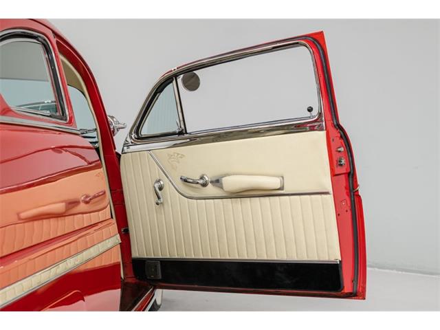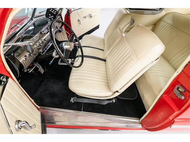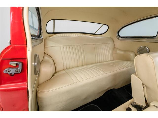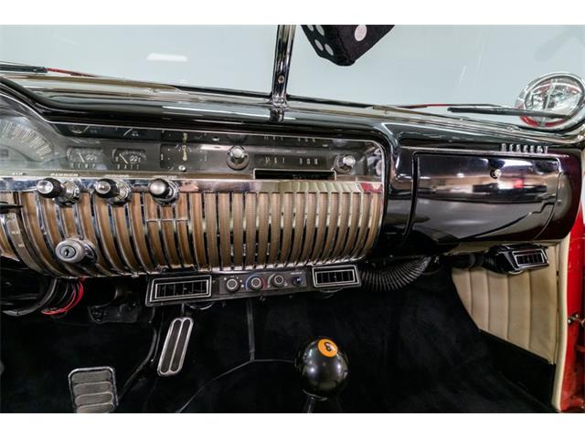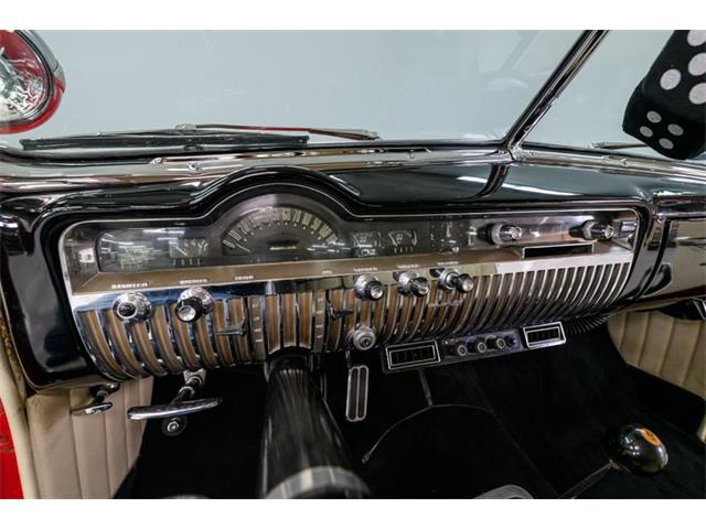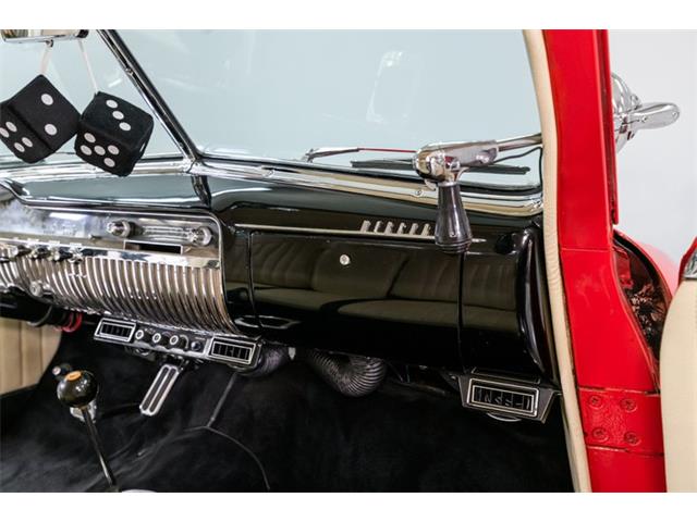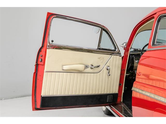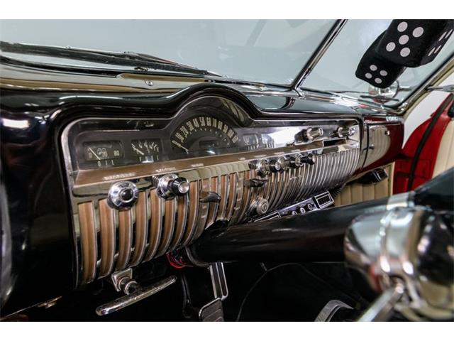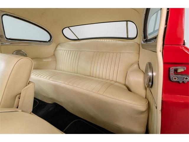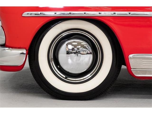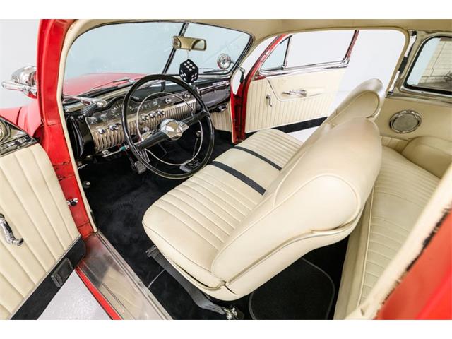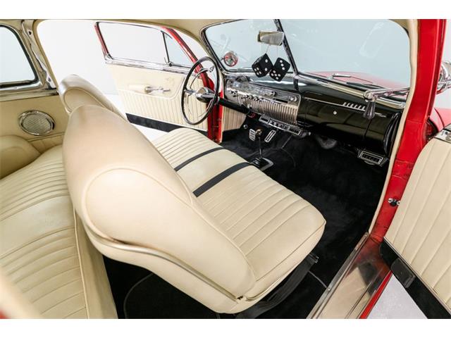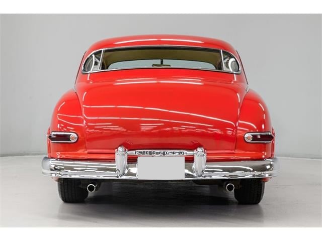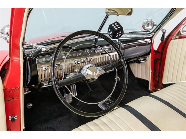 STK 3492 1950 Mercury Eight The Mercury Eight was the first and only model produced by Mercury from 1939 through 1951. The first post-war model was introduced in 1949 with distinctive pontoon styling. This fully enclosed body appearance ended the monotony of warmed-over pre-war styles and sales figures for both Ford and Mercury broke records in 1949. During that era, and beyond, the stylish Lead Sled Merc Eight has always been popular with customizers. This 50 Mercury Eight Coupe has been fully restored with many custom and mechanical upgrades. It received a 2-stage coat of Bright Red (1998) accented with period-correct fender skirts, dual spotlights and steel wheels w/caps, trim rings and wide-whites. All of the chrome, and there is a lot of it, is in very good condition and the doors are fitted with poppers. The interior has been nicely restored in cream vinyl. The front seat is power assisted and a handsome dash is equipped with full factory instrumentation and original radio. The headliner, door panels and carpeting are all in very good condition and a custom floor shift has been installed. Climate control is managed by a professionally installed air-conditioning system and a beautiful 50 Merc steering wheel completes the package. The Mercury is powered by a nicely dressed, rebuilt 350ci Chevy small-block with aluminum intake and Edelbrock four-barrel carburetor. A heavy-duty aluminum radiator has also been installed and exhaust is routed through a custom dual system. This power plant is backed by a GM 3-speed automatic gearbox and factory differential. Both steering and braking are power assisted with large drums on all four wheels. A front sway bar has been installed and all electrics have been upgraded to a 12-volt system.