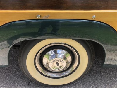 A rear mounted spare, full wheel discs, wide whitewall tires and still gleaming original chrome provided plenty of additional pizzazz as well as the optional rear tailgate simulated wood added style and class,