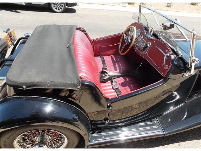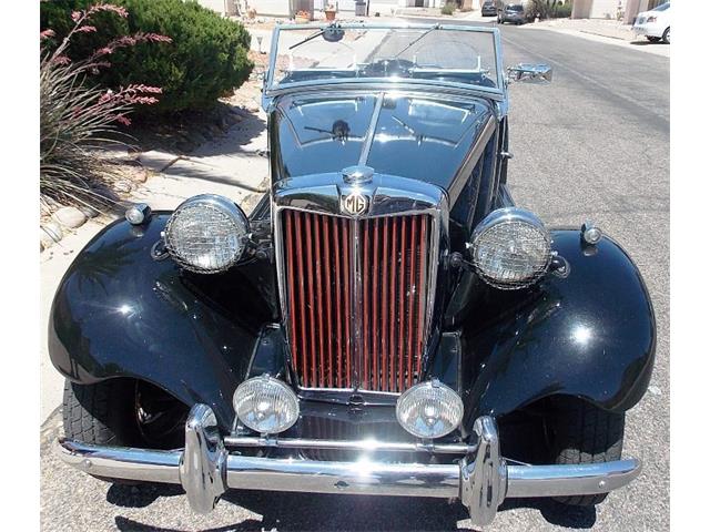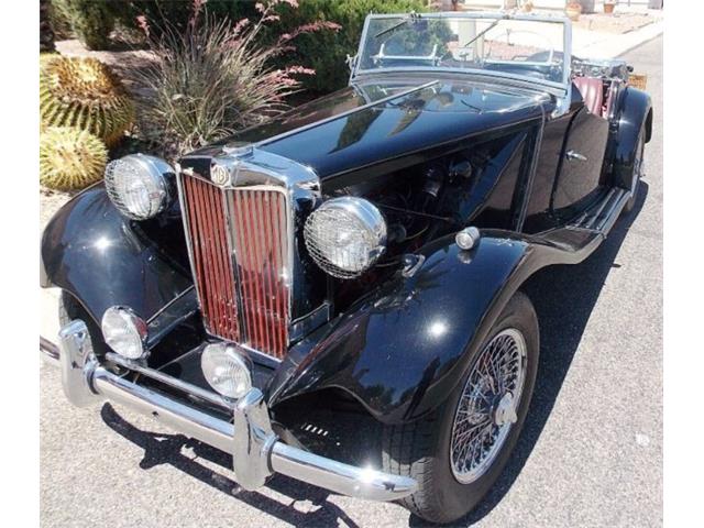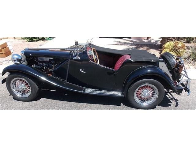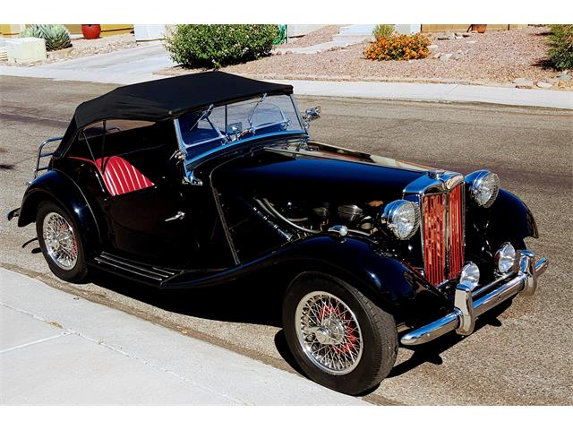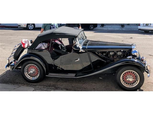 1952 MG TD has 4-cylinders and 4-speed transmission. Accessories include Brookland racing screens, 2 fog lamps, a luggage rack, and 3rd brake light behind the spare. Plus, Dayton stainless wire wheels, headlight stone guards, and coffin-style aluminum valve and tappet covers. Chrome air cleaners and spin-on oil filter. This is not a trailer-queen, nor does he ever cover it in the garage as it is always a joy to see it and drive.