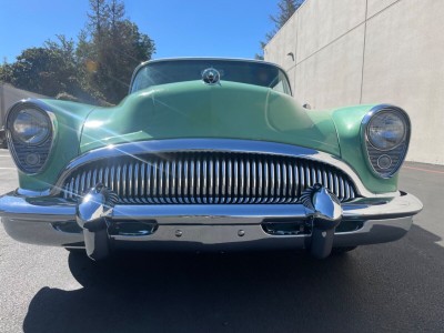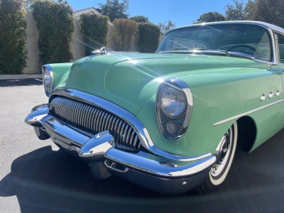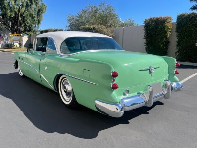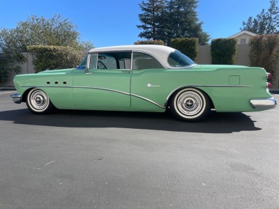 wagon were no longer offered as body styles. With the Super Riviera 1954 Model 56R has a naturally-aspirated V 8 cylinder engine, Petrol motor, with the engine code GM Buick Fireball V-8 322. This engine produces a maximum power of 180 PS (178 bhp - 132 kW) at 4100 rpm and a maximum torque of 400 Nm (295 lb.ft) at 2000 rpm. The power is transmitted to the road by the rear wheel drive (RWD) with a 3 speed Manual gearbox.On the topic of chassis details responsible for road holding, handling behavior and ride comfort, the Super Riviera 1954 has Ball joint front suspension with ride stabilizer. Coil springs. front suspension and Rear sway control by radius rod. Coil Springs. rear suspension. Stock tire sizes are 6.70 / - on 15 inch rims at the front, and 6.70 / - on 15 inch rims at the rear. For stopping power, the Super Riviera 1954 Model 56R braking system includes Drums at the front and Drums at the rear.The Super Riviera 1954 model is a Coupé car manufactured by Buick, with 2 doors and 6 seats, sold new from year 1954 until 1954