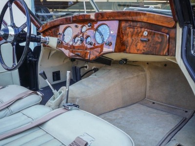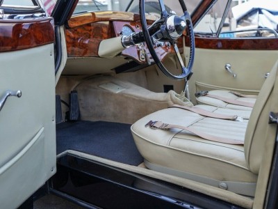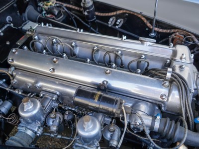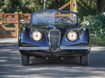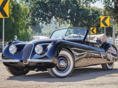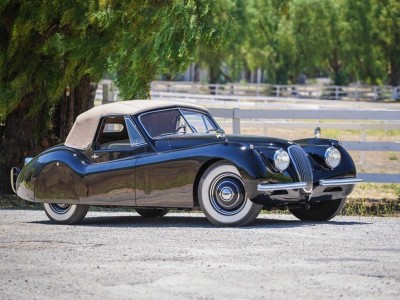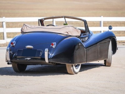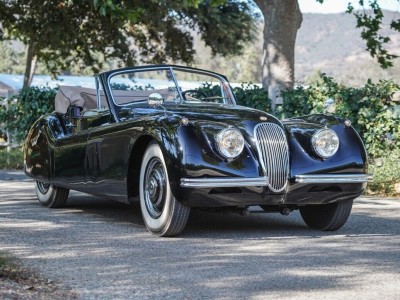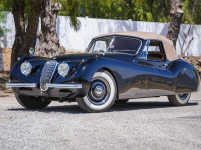 1954 Jaguar XK120 DHC with just 69,000 miles on the odometer. This left-hand-drive Drophead Coupe boasts its original numbers-matching 3.4-liter DOHC inline-six engine, paired with a four-speed manual gearbox for an authentic driving experience.Finished in timeless black over a refined tan interior, this XK120 comes with a sand beige soft top to complement its classic styling. Equipped with an aluminum radiator and electric fan, this Jag is ready to hit the road with confidence and reliability.
