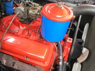 I went through the car to make it drivable . Original 265 runs very well , no noise no smoke has manual 3 speed on the floor , shifts nicely through the gears , sounds nice with dual exhaust and cheery bombs .