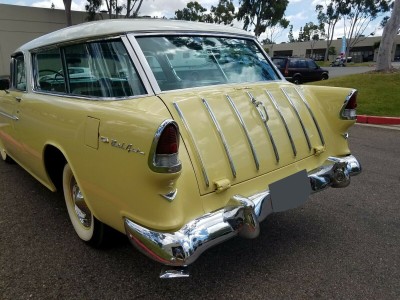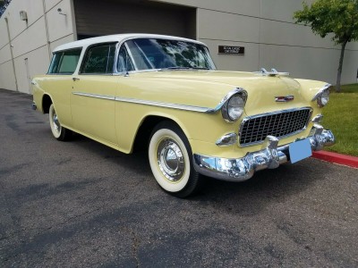 This is an immaculate restoration and will easily win any Concourse that you enter it in. Want to drive it to your neighborhood car show and leave them breathless with the quality of this restoration? A frame off nut and bolt numbers matching restoration of an American classic, this 55 Nomad Chevy Wagon is the finest tri 5 Chevy that I have ever seen.The original and very unique color combination of yellow (Harvest Gold) and white exterior (India Ivory) and green (Green Waffle) and white (Beige) interior is stunning. This gem has been stored in environmentally controlled storage facilities for the last 13 years and has been driven sparingly to keep the seals and rubber from drying up. She always starts right up and runs flawlessly.
