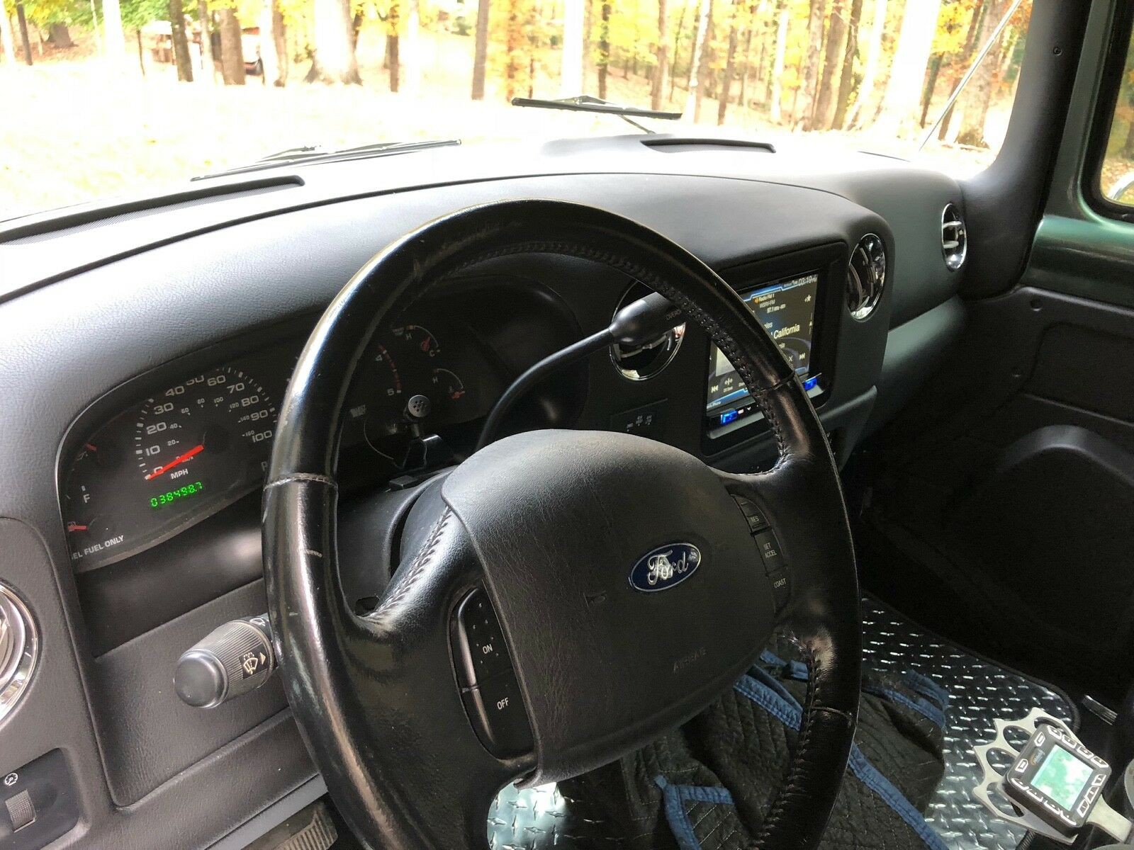 All fully integrated into the F-350 Donors Dash and Instrument Cluster. This Interior truly looks like it came from Ford like this.The engine is located under the front seat which has an electric actuator for easy access.