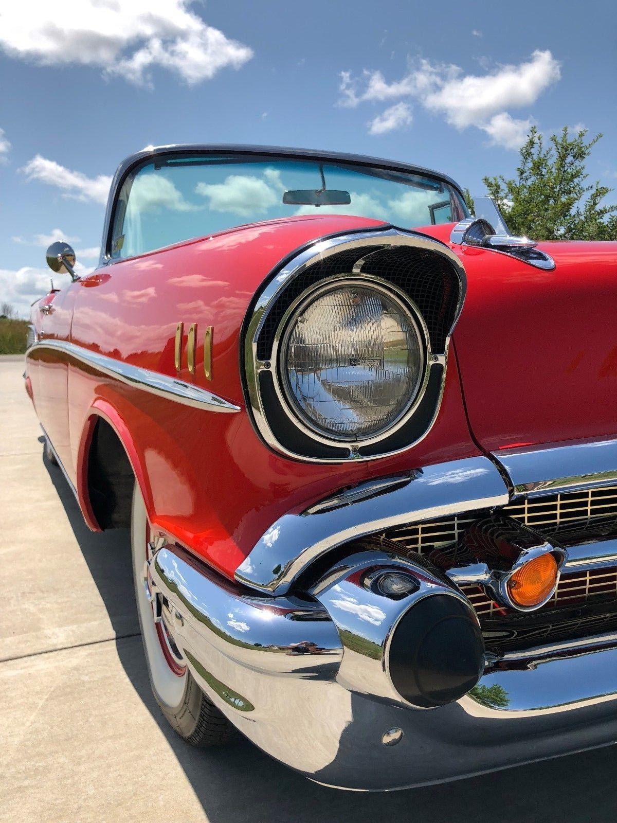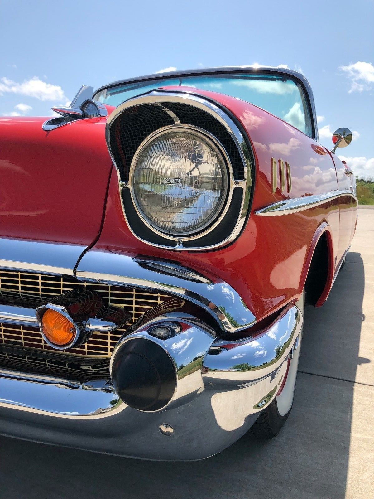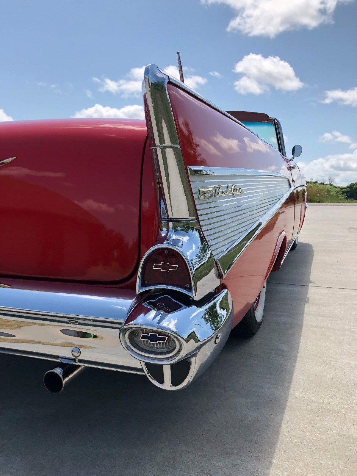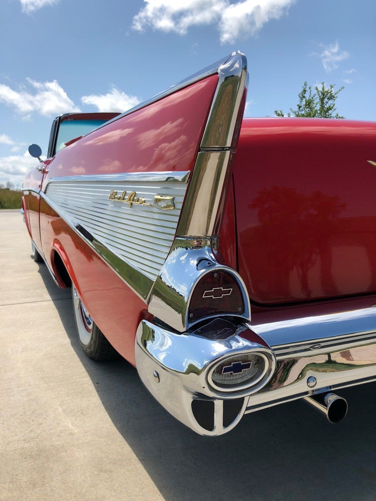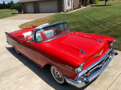 This is a beautiful example of a classic 57 Chevy Bel Air convertible.