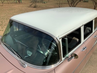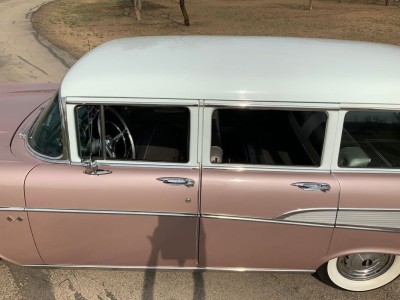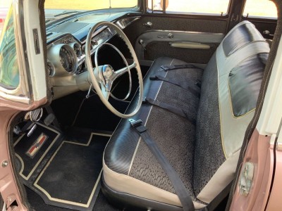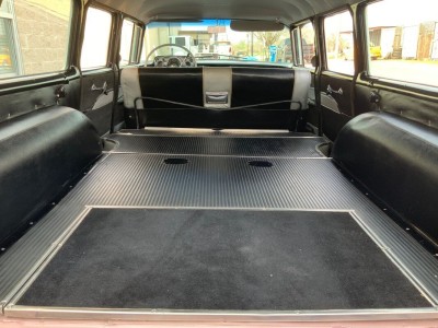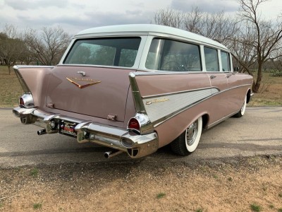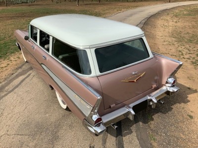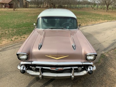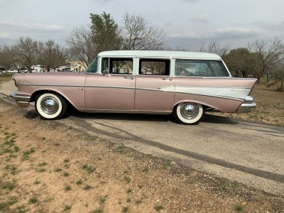 This stunning 1957 Bel Air Beauville is an excellent and quite uncommon example of these classic cruisers. While not as rare as the Nomad, in 1957 there were 20K fewer Beauvilles produced than the iconic Bel Air convertibles! Lift the beautifully sculpted hood and you'll find what we believe to be the original "Power Pack" 220 hp 283 V8 (EC F626GC). Additional features include the beautiful and correct Dusk Pearl over Imperial Ivory (822) paint, correct Silver and Black (684) trim, power steering, air conditioning, TH350 automatic transmission (substituted for the dreaded original Turboglide), AM/FM radio, auxiliary gauges for voltage and oil pressure, and classic 205/75R14 wide whitewall tires mounted on steel wheels with correct covers.