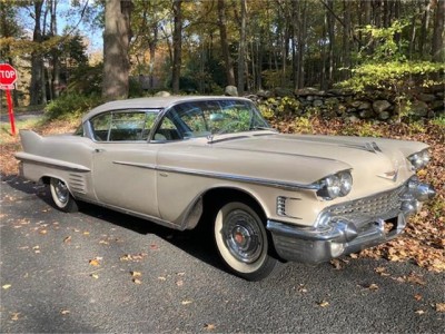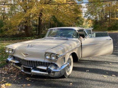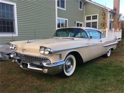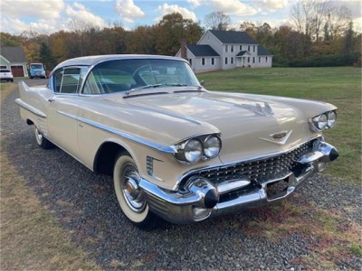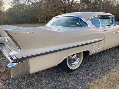 The car is finished in Buckskin Beige and powered by a 365ci V8 paired with a four-speed automatic transmission. Features include power windows,factory window tint, chrome trim, quad headlights, fog lights a rare option, an Autronic Eye headlight dimmer, and power-assisted brakes. Recent service is rebuilt master cylinder, new battery,oil change, new power steering hoses. It also has a automatic trunk opener in the glove box, very rare for 1958. The car runs and drives great. This car drives like it is floating on air and the power steering makes it a breeze to park. The DeVille has space for all the family, and your friends, the trunk has plenty of space for luggage and for trips to the Country Club with four golf bags. This classic cruiser is a true survivor ready for the open road and ready to show off at your local car show. You'll be the talk of your neighborhood and spark many memories of yesteryear as you glide by making lasting memories of your own! DO NOT miss your opportunity to own a piece of Cadillac History and Americana with the last of the luxury 1958 chrome king and a show car that shows “You Have Arrived”. I have a full set of extra hubcaps in the trunk and a Cadillac flask and cup set in the glove box. This car is all original and just like it left the factory. This car does have a small dent on the back passenger side and the paint shows some nicks and age,but NO RUST.