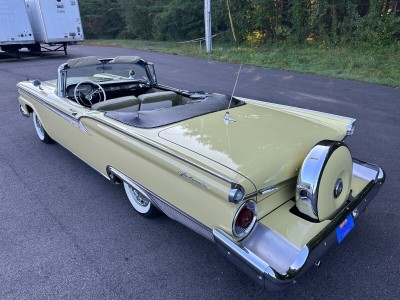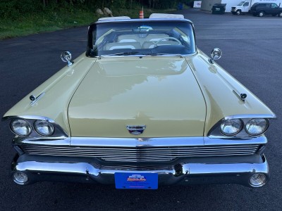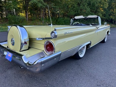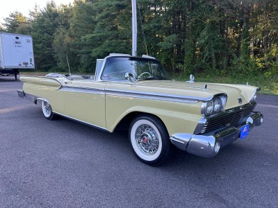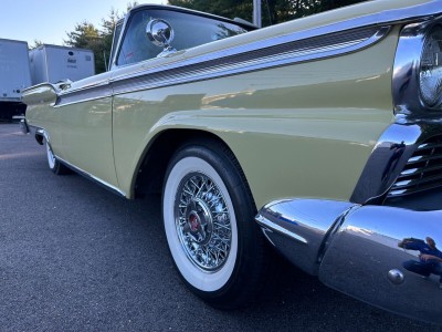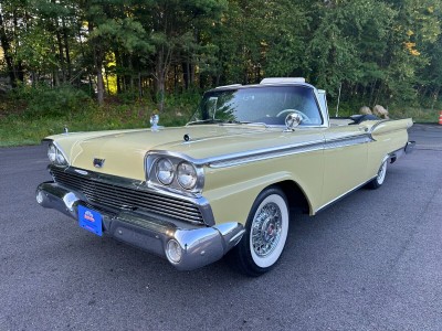 Here we have the underdog. By that I mean against the boys at Chevy. Ford never could outsell the guys down the road. That makes this car unusual and more affordable.Here we have a GORGEOUS example of a 1959 Ford Sunliner. This is the full size soft top version of the linup for 59. This is not the trouble prone and complicated retractable hardtop model. Those were called Skyliners.Listing on behalf of a family who wishes us to find a new forever home. This car in it's striking combination of numbers matching Inca Gold with contrasting gold, white and black interior is just a stunner. Not to mention the beautiful Kelsey Hayes true wire wheels! Jaw dropping.Equipped with the optional 332 V8 and mated to a three speed Cruise-O-Matic automatic transmission. This car is also equipped with power steering, brakes and top, a town and country factory radio (inoperative) and fully functional POWER WINDOWS. A nicely equipped convertible for 1959!Rock solid body. GORGEOUS paint and trim. Not a flaw to be had. Nice, white convertible top too!