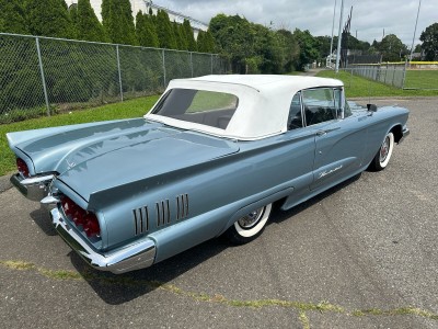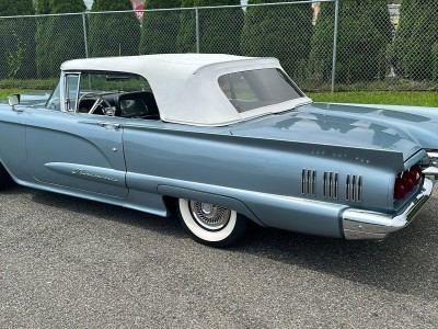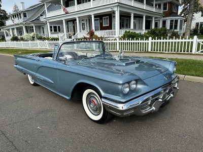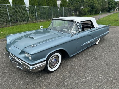 1960 FORD THUNDERBIRD CONVERTABLE 352 CID 4 BBL V8 AUTO POWER STERING YEAR: 1960 MAKE: FORD MODEL: THUNDERBIRD BODY: CONVERTIBLE COLOR: BLUE / WHITE TRIM: WHITE / BLACK ENGINE: 352 CID 4BBL V8 TRANS: AUTO / OVERDRIVE REAR: 310 TO 1 MILES: 92,275 (EXEMPT) SERIAL#: OY73Y179303 OPTIONS 352 CID *AUTO OVERDRIVE TRANS *POWER STERING *POWER BRAKES *AM RADIO *POWER TOP *WHITE WALL RADIAL TIRES SERIAL BREAK DOWN *0= 1960 Y-WIXOM PLANT 73 - CONVERTABLE Y-353 CID 4BBL V8 179303 - SEQ# DOOR TAG 76- CONVERTABLE H-BROWN 84-TAN TRIM 29G-29TH JULY 4-AUTO TRANS 3-310 TO 1 REAR RESTORATION COMPLETE PAINT WITH SOME TOUCH UP SPOTS. INTERIOR COLOR CHANGE. NEW ALTINATOR, REAR AIR SHOCKS. NEW ELDERBROCK CARB WITH ELECTRIC CHOKE. RADIATOR COOLING FANS.WHITE WALL RADIAL TIRES. THE CAR RUNS AND PERFORMS GREAT AT ALL SPEEDS.