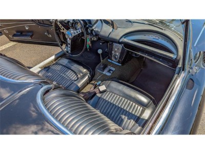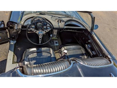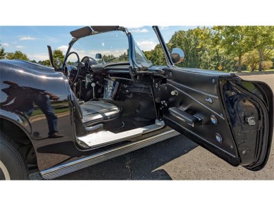 The car itself was produced with a 327 cubic inch engine with 340 horsepower. It had high performance cylinder heads, intake manifold, carburetor and camshaft. This engine was second in horsepower only to the 327 fuel injected engine in 1962. The car had its original Borg Warner 4 speed manual transmission and had both tops- a convertible top and a second removable hard top. There were few power accessories offered in 1962 and so such options as power brakes and power steering were not even available. The same was true for air conditioning. Although silver when new the car had been through a succession of colors, first black, then red and finally white. The interior was black.