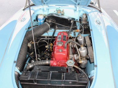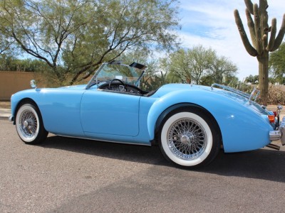The high-compression 1622cc 4-cylinder engine fires right up and runs strong and smooth. This car starts on first crank time every time. The engine does not smoke on start up nor while driving. The engine has excellent oil pressure and runs nice and cool even in Arizona's hot climate. The transmission was treated to a new clutch during the course of restoration. The 4-cylinder exhales through a great sounding exhaust system that gives this MG that classic British sports car sound. This MGA features disc brakes and stops well and straight. The tires are new Coker wide-whites and the car goes down the road at speed with ease. As previously mentioned the car has been restored in the past and is ice and tight, driving the way a MGA should.