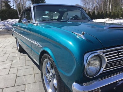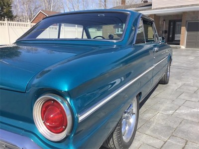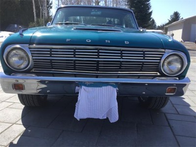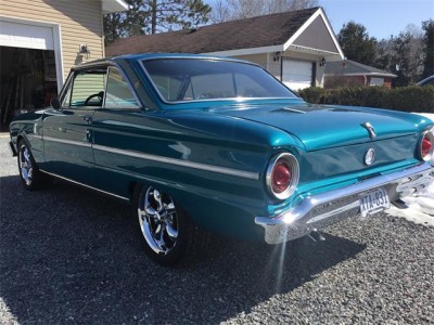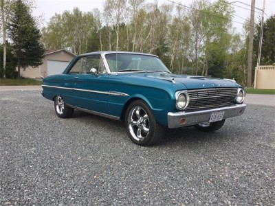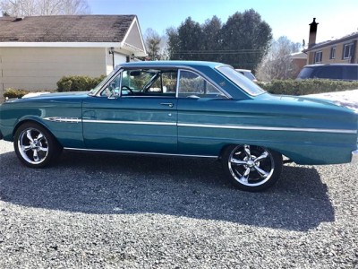 1963 Ford Falcon Futura 2 door hardtop. The Falcon was upgraded to a 302 with a T-5 5 speed transmission, with vintage air conditioning and disc brakes. Air blows cold. Car was originally a 260 with a 4 speed transmission. Aluminum radiator, HEI ignition, aluminum intake, edelbrock carburetor. The 302 was from 1970 Mustang has been rebuilt with mild cam, roller rockers, and the T-5 transmission is from a 1991 Mustang with new clutch, pressure plate, bearing. Dual exhaust, tachometer, sprint badging. Differential has new Richmond 3:80 gear ratio. New tires, 235/45ZR17 with aluminum rims, dual sport mirrors, new aftermarket guages ( classic guages) all working. Interior is in excellent condition with bucket seats, centre console, new rug, no rips or tears in interior, headliner excellent condition, also door panels are beautiful condition. Paint is in very good condition and the pictures will show a few flaws in paint, but very good and clean condition. The Color code is D (Ming green) Car is the original factory Color . Car can be driven anywhere, runs and drives very nicely. Call anytime to discuss more about this beautiful Ford Falcon.