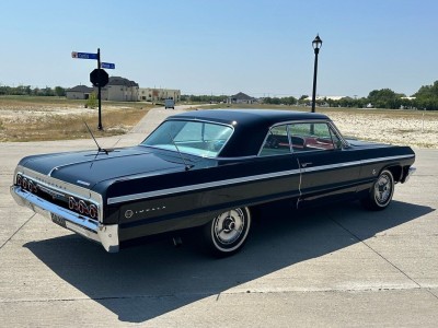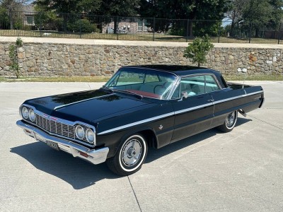 1964 Impala SS for saleĀ -409 with dual quads, 4 speed car -Factory SS, black with red and white interior -Nice older restoration that shows very, very well -Mostly factory build with some modern touches like Vintage Air, tilt steering column, Griffin aluminum radiator and front sway bar -Runs, drives, stops, steers, shifts like it should -Very clean and straight car ready to be enjoyed!