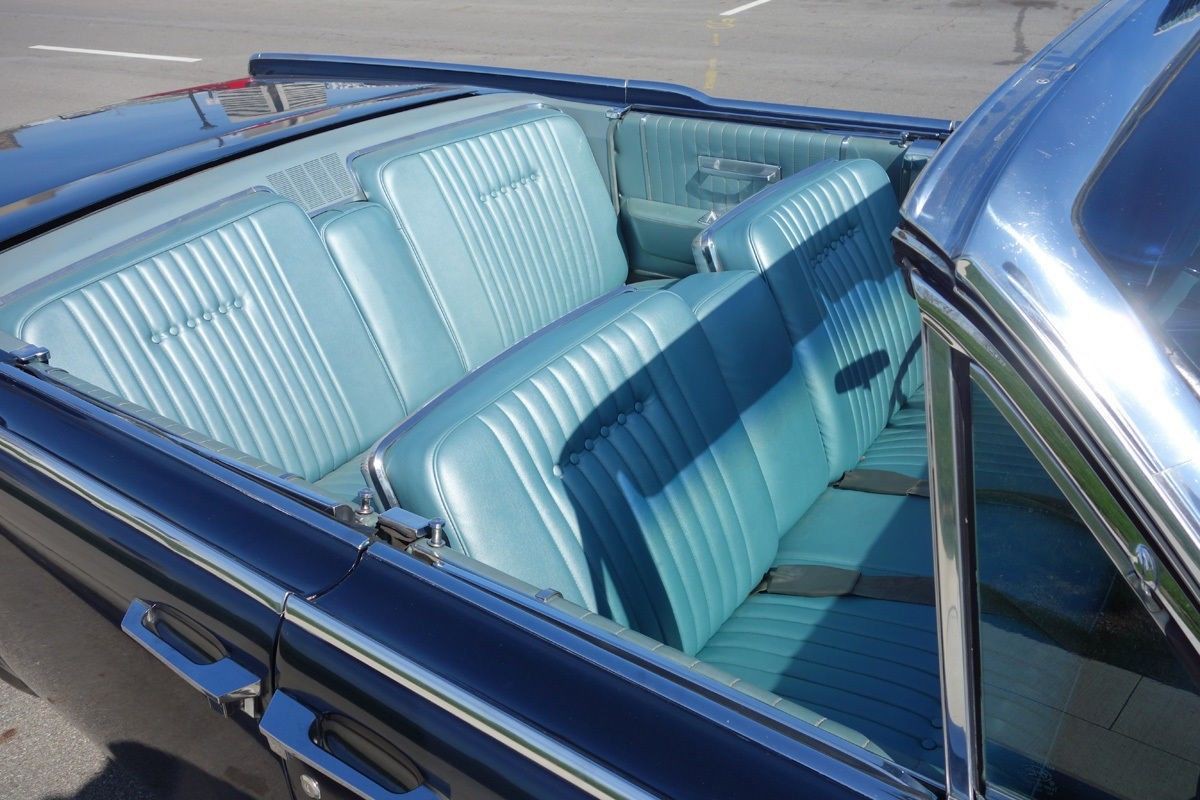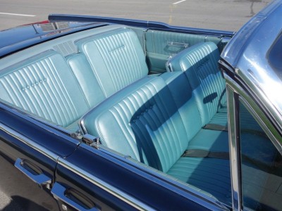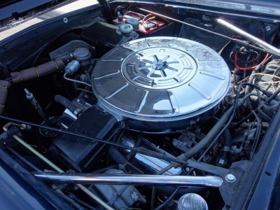 Most of the restoring budget has gone into internals. The engine had some minor maintenance done in 2011 (the choke rod had come loose and the ignition points and cap and rotor contacts were dirty; the choke mechanism and idle mixture had to be adjusted) and now runs very smoothly. The wiring-headlights, power windows, gauges, lighting circuits, etc. –was repaired in 2012 and has experienced only minor issues since. Sometimes a window will refuse to go up or down for a little while, but they generally come around before too long. The gauges were all restored to working condition, the suspension was repaired, the convertible top mechanism was checked out and found to be in working order, the horn was restored, the ignition bezel (unique to the 1964, it turns out) was replaced….they were even able to find and install license plate lamps. In 2014 it got all new wheels and original hubcaps. The brake system was totally re-done in 2015, including master cylinder, brake booster, wheel cylinders and brake hoses front and rear, and new brake line.