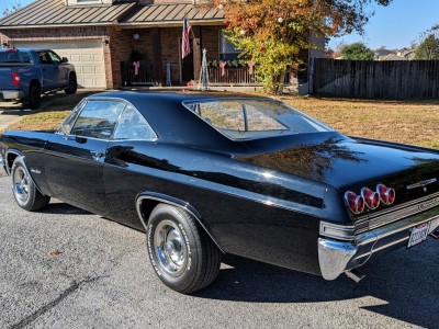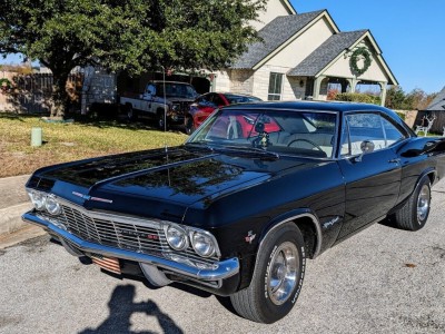 1965 Impala SS for sale Price 42k OBO Location: Black, white interior. 327 NOM engine four barrel carburetor, perfect sounding dual exhaust, 202 double hump heads, edelbrock aluminum intake, power glide transmission. Older restoration, 15inch rally wheels. Original radio - more modern radio mounted under glovebox, wired to some speakers in the rear. Car starts, runs, brakes and sounds like a champ. Always Runs cool @ 170 Degrees, with good oil pressure. Push button ignition. 4 wheel disc brakes. Paint 7.5-8/10, some imperfections, minor dings in trim. all complete. No rust i seen anywhere. Trunk in excellent shape (includes original spare!)Recent fixes/upgrades: New gas tank, BFG TA tires under 2k miles, 235-70-15‘s, diehard gold battery & starter, 4 wheel wildwood components disc brakes, new brake lines, rear suspension fixed (new control arms - Hotchkis!