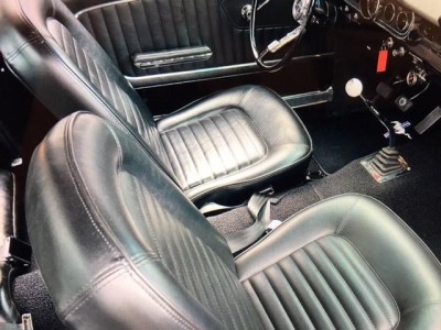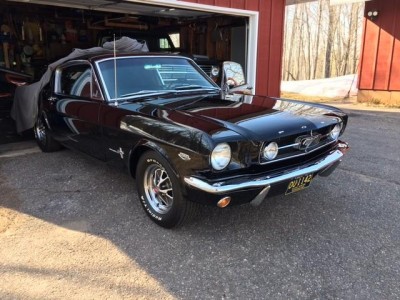Beautiful Raven black 2+2 kcode Mustang. Car has been fully restored with a new Dynacorn body (all new metal) . Many of the original parts were used, such as the green Autolite glass, interior seating, dash and instrumentation, door panels and some of interior trim to lend authenticity to the restoration, The carpet, mats, headliner, race belts and all of the rubber weather stripping, plugs, bumpers and seals have been replaced. The undercarrage has been sprayed in red oxide as the factory did, and is clean and detailed like the rest of the car. It appears virtually un-driven. The engine compartment is pristine and the engine is a Mexican warranty replacement block with the wide main bearing straps. The the original internals, manifolds, carb, balancer, motor mounts, fan, water pump, dual point distributor, and numbered kcode heads are original to the car and were used in the rebuild. The car sits on the original styled wheels shod with B.F. Goodrich radial TAs in the correct factory size. A new Diehard battery comes with the car as well, and a new set of rally pac gauges were recently installed The paint is in like new condition, and needs nothing. This restoration is nearly complete, with only fine details left to finish: The new GT fog lamp kit need to be wired, and there is a set of GT stripes as well, not installed yet. The car has a box of paper work ( owners manual, dealer service manual, showroom promo brochures, various decals , a new shop manual,