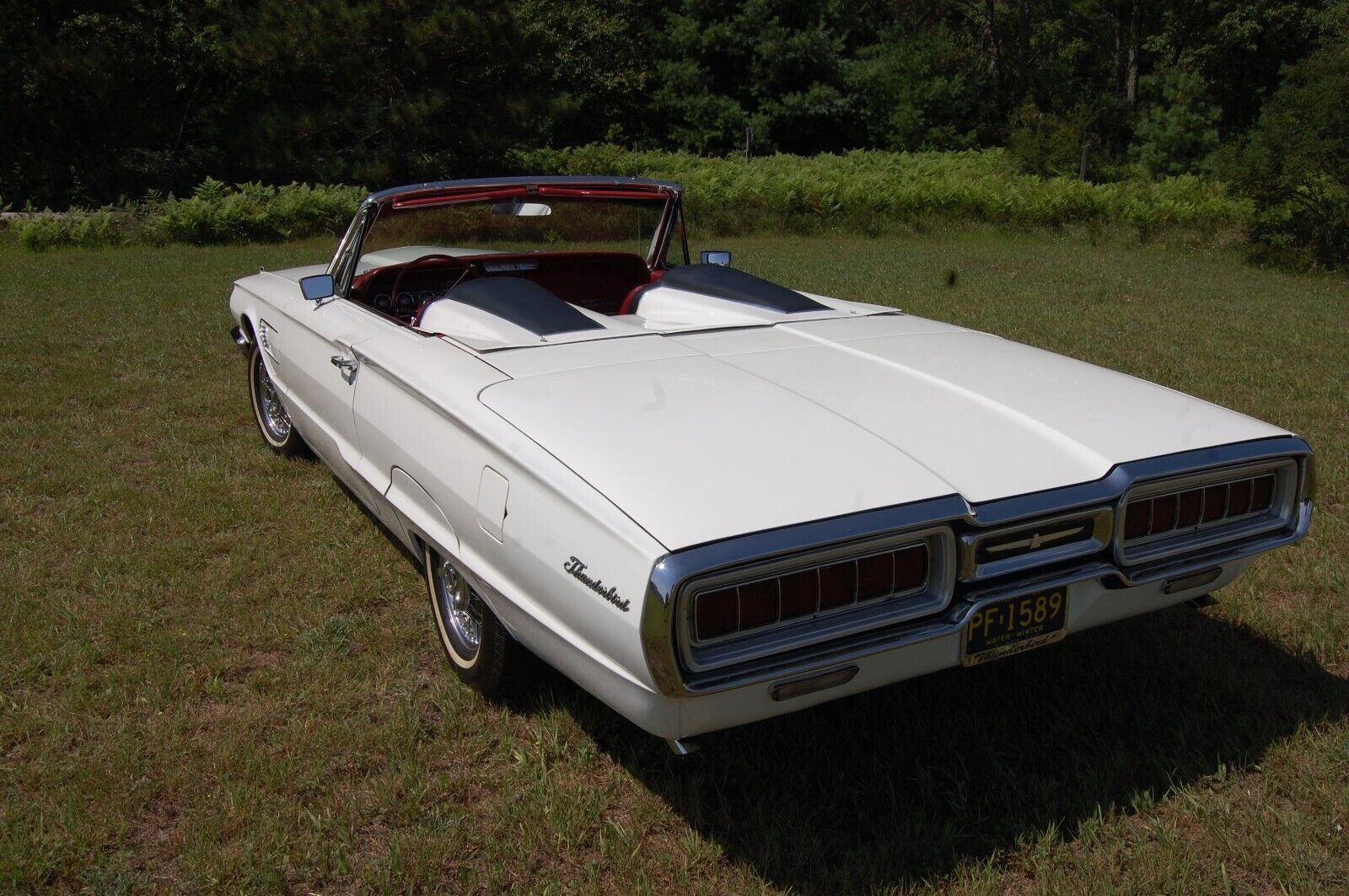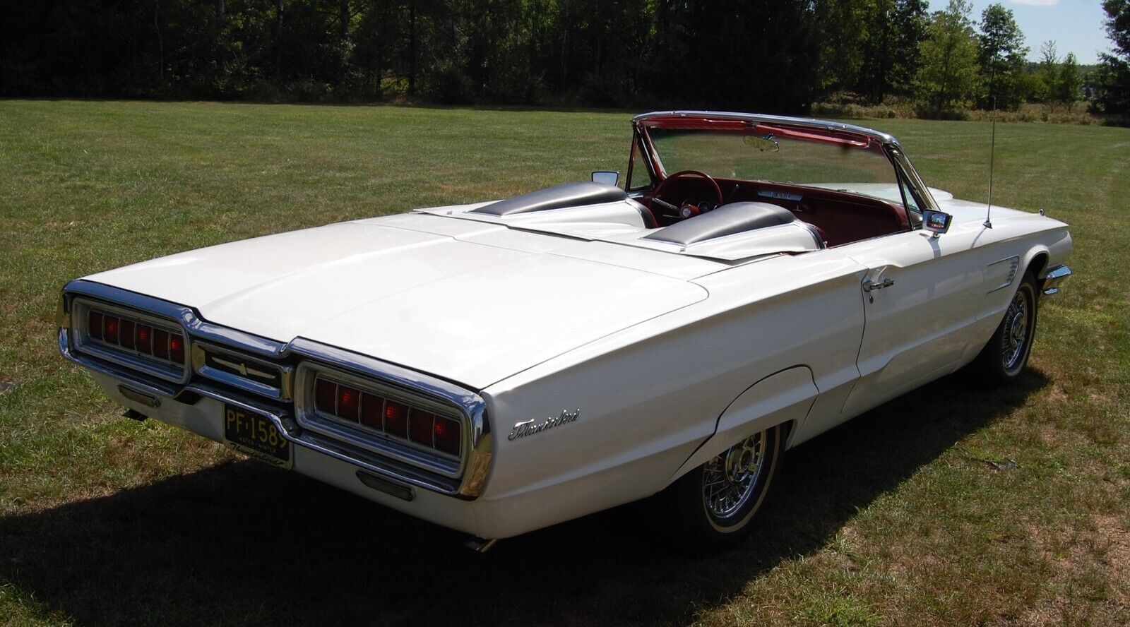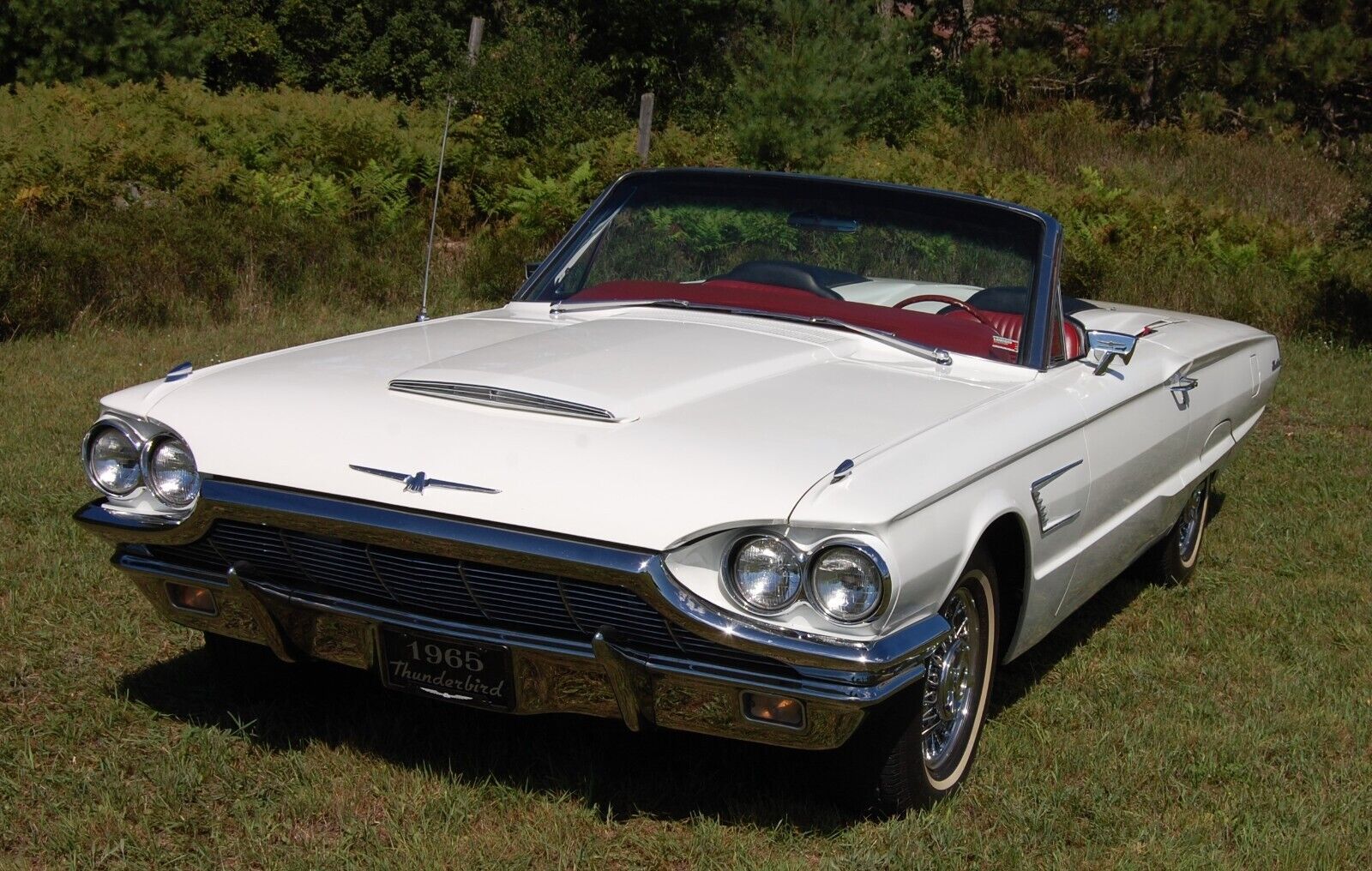Offered for Sale is a Stunning, Beautifully Restored, Show Winning, 1965 Ford Thunderbird Convertible, with its Original Strong Running Z-Code 390 CI V8 Numbers Matching 300 HP Engine, Cruise-O-Matic MX 3-Speed Automatic Transmission, and Gorgeous Red Interior.The Wimbeldon White Paint and Red Leather Interior Really Pop, Making this Bird a Red Crowd Pleasurer. Making this Car Even More Special is its Sports Roadster-Style Rear Seat Tonneau Cover, which was a Desirable Dealer-Available Accessory in the Period, Featuring a Sleek Integral Headrest and Provides Curb Appeal that Makes it Stand Out From all Other Thunderbirds Without this Great Value-Add Option. If that Wasn't Enough, Making this Beauty Even More Special and Standout Even that Much Further from the Crowd, are its Factory-Type Kelsey-Hayes Chrome Wire-Spoke Wheel Rims Featuring BF Goodrich White Wall Radial Tires.This Bird has its Strong Running Original Number Matching Z-Code 390 CI Engine. Starts Easily, Runs Strong, Drives Straight, Smooth, and Tight, and Does Not Overhead. The Body and Paint are in Excellent Condition with Only a Few Very Minor Marks, Scratches, and Small Dents. Glass and Chrome are Great, and the Interior is in Very Good Condition with Minor Wear. The Floorboards are Solid and In Great Condition with, and the Power Convertible Top is in Great Working Condition. The Engine and Engine Compartment are Clean and in Great Condition. Very Nice Car!