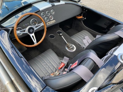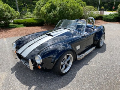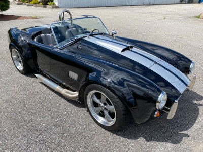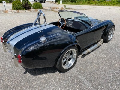One of the most iconic cars ever is embodied in this Factory Five Racing MkIII Cobra replica! Finished in Black with silver stripes, with black interior. The simplistic nature of this roadster is what draws you in, and keeps you smiling. The roar of the sidepipes fed by a 340hp Crate 302V8, backed with a 5pd manual and 3.73 rear gears keep you planted firmly in your seats. This is not a donor build, this was built with 100% new drivetrain when built.