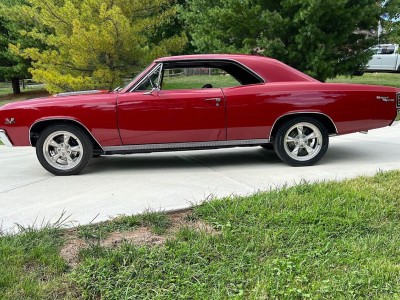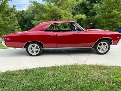 GORGEOUS 1967 CHEVELLE SS TRIBUTE 396 4SPD 12 BOLT POWER RACK , PINION STEERING 4 WHEEL PDB BLINKER TACH FACTORY GAUGES FRONT 7 REAR UMI PERFORMANCE SUSPENSION FRESH FRAME OFF RESTORATION SOLID , LASER STRAIGHT BEAUTIFUL HIGH QUALITY BOLERO RED PAINT WITH ALL NEW BUCKETS AND CONSOLE BLACK INTERIOR