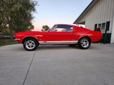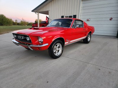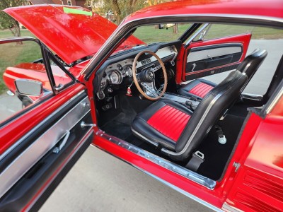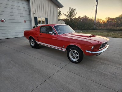 :Heavy duty suspension.9 in rear end with 3:25 posi.Disc brakes.Power steering.Select-Aire a/c.Deluxe interior with overhead console, brushed aluminum inserts, premium door panels, floor console, fold down back seats.C-code automatic.Marti report available.New:Fuel tank, fuel sending unit, Evil Energy fuel line, Scott Drake color matched front and rear shocks, rubberized undercoating, Global West subframe connectors, rubber body plugs, rubber chassis bump plugs, color matched tie down loops/tow hooks. The car does need brakes.Front valance, bumper guards, turn signals, bumper, headlights, headlight rings, GT running pony/bars/fog lamps, grill, grill molding, correct dual horns,Rear GT valance, back up lights, bumper, bumper guards, tail lights, trunk lock, GT gas cap, deck lid letters, deck lid trimWheel well moldings, all six fender emblems, rocker panel moldings, door locks, door handles, passenger mirror, driver remote mirror, outer side window moldings, drip rail channel, drip rail moldings????, GT stripes, Hood letters, Hood molding, wipers, and American Racing torque thrust wheels.Rear window, windshield, door windows, and wing vent glass, chrome moldings for all glass, wiper arms and blades.Matrix two stage PQ base/clear Ford Race Red paint, Shelby GT500 Hood, white racing stripes and GTA 390 emblems.Herculiner under coating on hood, hood latch, Chrome Hood catch, hood latch assembly, Hood bumpers, rear hood seal, Chrome fender bolts, Chrome export brace, Chrome shock caps, windshield wiper lines, stainless steel windshield wiper fluid reservoir, stainless steel radiator overflow, color matching Optima Red top battery with 800 CCA, solenoid, voltage regulator, radiator support seal.Custom trunk carpet including deck lid with running pony, wired gravity Puck light, trunk seal, rubber bumpers, trunk latch, and prop rod.Deluxe interior with color matching seats and doors, brushed aluminum dash/door inserts, floor console, shifter/shifter handle, overhead console, headliner, rear sail panel lights, vent slides, window handles, door sill plates, door handles, carpet with padding and sound deadener, steering wheel pad, turn signal, hazard switch, instrument panel inserts, white face gauges, Equus tachometer, Boss stereo system including Bluetooth stereo, trunk 400 w 6x9 speakers, 6-in kick panel speakers, and RetroSound 5x7 dual factory fit dash speaker, dash pad, door lock covers and grommets, all four seat belts with model correct long front retractables, day/night rearview mirror, door seals and bumpers, ID plate (have original), ignition, and headlight switch.Ready for the drivetrain of your choice. Room for a big block or go with a modern 5.0 Coyote setup.I have spent basically every day the last two years working on this car and planned on keeping it but life happens.