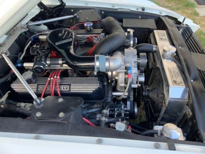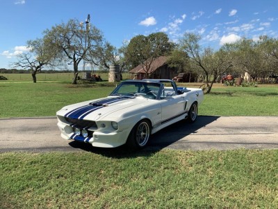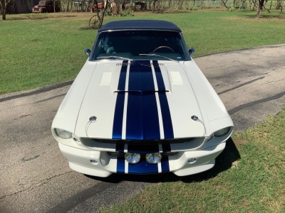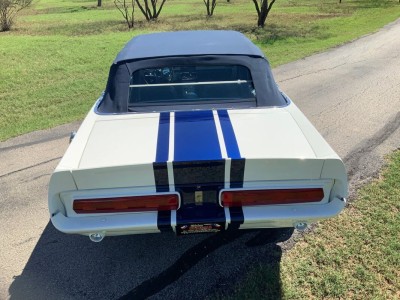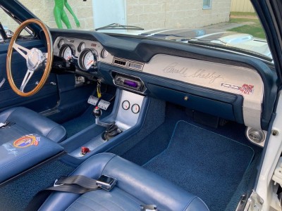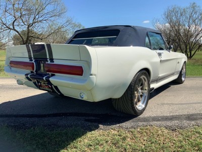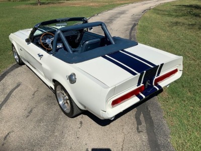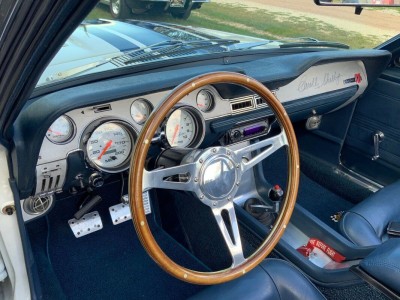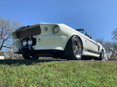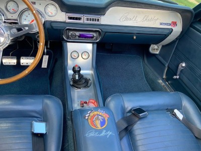 1967 Mustang, this Shelby GT500E Super Snake Convertible was one of the 'Continuation Series' that Shelby gave his blessing to beginning in 2001. Beneath the hood is one of the coolest engines we've had the pleasure to encounter. How about an ALUMINUM (!) FE Ford 427 Side-Oiler sporting fuel injection AND a Vortech supercharger? As if that wasn't enough power already, the car has a 200hp NOS bottle in the trunk that has never been hooked up or used. Additional features include a Tremec TKO 5-speed manual transmission, 12.5" Tilton hydraulic clutch, a Currie 9" rear end with Trac-Locker and 3.25 gears, Unique Suspension Products front and rear coilover suspension, power rack and pinion steering, Baer 4-wheel disc brakes with drilled and slotted rotors, Old Air Products Hurricane A/C system, Sony stereo with 10 disc changer, leather upholstery, Shelby alloy wheels, and, of course, the Carroll Shelby signed dash.