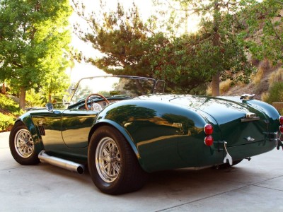 406 Powered Everett Morrison Shelby Cobra build in iconic British Racing Green with Tan Interior.Powered by a 406ci V8 mated to a Tremec 5-speed manual and PosiTraction rear end. Additional equipment includes a Holley carburetor, MSD ignition, Griffin radiator, adjustable driver's seat and Simpson harnesses. Recent service includesreplacing gaskets for the intake manifold, valve covers, timing chain cover, and engine front end in addition to replacing the oil pan and gasket, power-steering pump, and spark plugs and wires. Car comes with 2 folders of receipts and build photos.- 406FE Big Block- Aluminum Heads- MSD 6AL Ignition- 10:1 compression- 5-speed Tremec TKO- Corvette IRS- Posi-traction with 3.08 rear gear- Griffin aluminum radiator- Black Magic primary fan and pusher auxiliary fans- Oil cooler with dual remote oil filers- Headers with side exhaust pipes with street mufflers and heat shields (heat shields are not installed)- Small foot drop of added room in interior- Adjustable driver's seat- Signed Glove box- Eclipse stereo- Smith gauge- Til Steering wheel- Heater/deforster- Dual blade windshield wipers that work- 3 view mirrors- Period correct emblems- Tilton master cylinders- Power steering- ECI remote brake booster system- 90 inch wheelbase