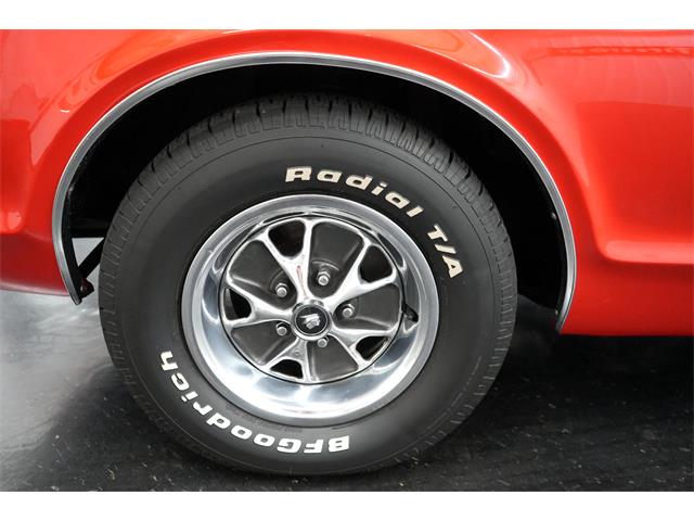 Power Brakes. Power Steering. 120mph Speedometer. 14 Inch Wheels. 2.76 Gear Ratio. 302cid Small Block Ford Engine. 5-Blade Cooling Fan. Accel Coil. Aftermarket AM/FM Radio. Automatic Floor Shifter. BFGoodrich Radial TA Tires. Black Air Cleaner. Black Carpeting. Black Dash. Black Door Panels. Black Headliner. Black Pinstriping. Black Valve Covers. Black Vinyl Interior. Black Vinyl Top. Bright Wheel Lip Moldings. Bright Window Trim. C4 Automatic Transmission. Chrome Exhaust Tips. Chrome Front and Rear Bumpers. Driver and Passenger Side Mirrors. Dual Exhaust. Edelbrock 4 Barrel Carburetor. Edelbrock Aluminum Intake. Ford 8 Inch Rear End. Front Bucket Seats. Front Seat Belts. Front Tires: 215/70/14. Hide-A-Way Headlights. Kickpanel Speakers. Long Tube Headers. Magnaflow Mufflers. Mechanical Fuel Pump. MSD Super Conductor 8.5mm Wires. Rear Leaf Springs. Rear Tires: 215/70/14. Red Exterior. Speakers in Package Tray. Stock Distributor. Stock Radiator. TCI Finned Transmission Pan. X Pipe Exhaust. Front Disc Brakes. Rear Drum Brakes.