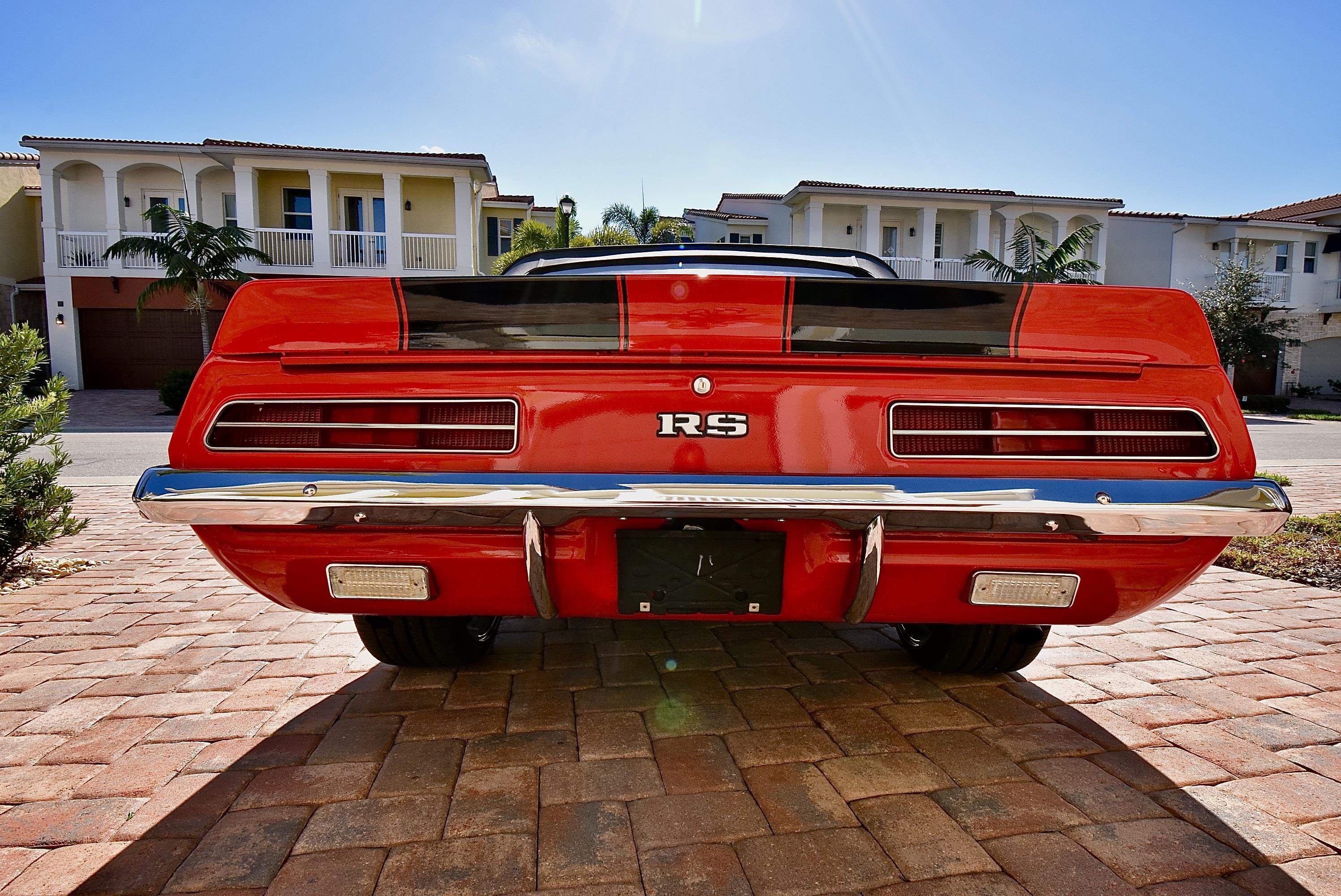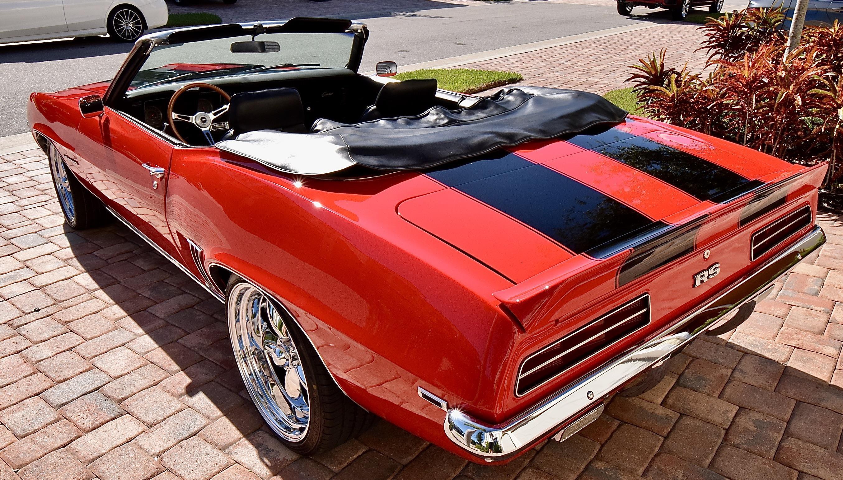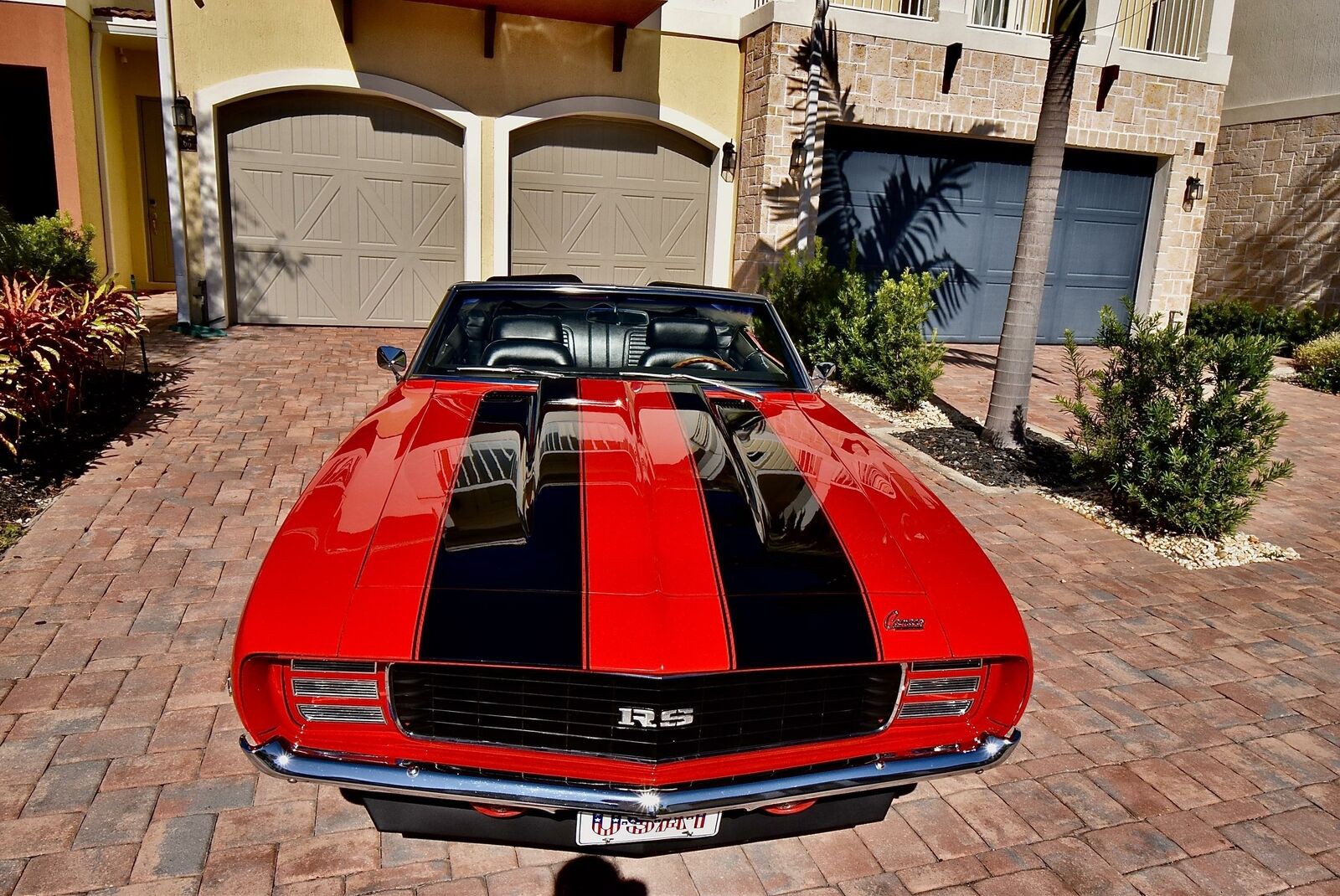1969 Chevrolet Camaro RS Convertible. Immaculate Red paint with Stripes under the clear. Interior is in very good condition. Powered by a 454/V8 4 bolt main serpentine belt motor, aluminum intake, electric fans, 4 speed manual, Hurst shifter, hideaway headlights, bucket seats, console with gauges, power steering, power brakes, power top and black top boot. New wood rim steering wheel, new American Racing wheels. Tachometer will be added in the clock position. This a stunning car in person and pictures.