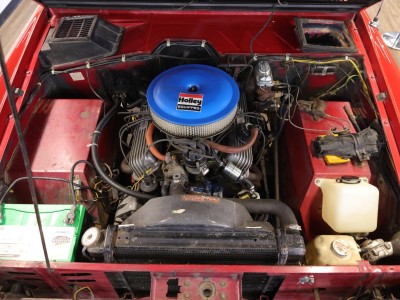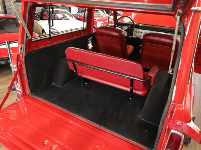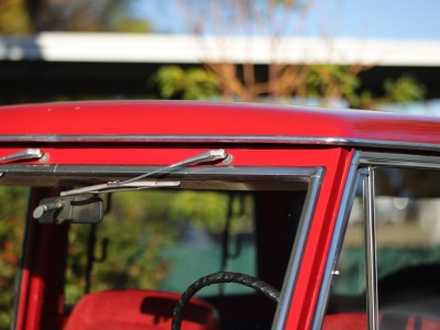 The engine has had a few upgrades including a Carter carburetor, Edelbrock aluminum heads and finned valve covers. Inside the story is much the same with what appears to be a time capsule. The red cloth seats show very nicely for their age, the carpets look great, and the original switches and knobs on the dash all look nice.