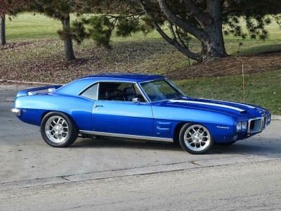 1997 Dodge Viper GTS. The Viper Blue paint is accented nicely with twin white body stripes. This Firebird is no Trans Am, but does feature a Trans Am hood, rear spoiler, and fender heat extractors to create an aggressive appearance along with the modern driveline.