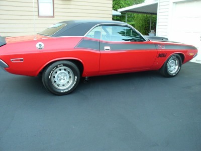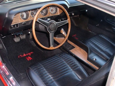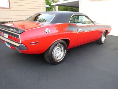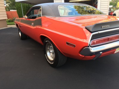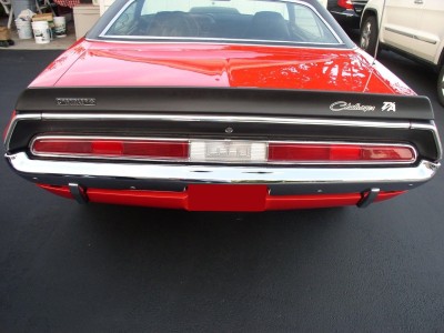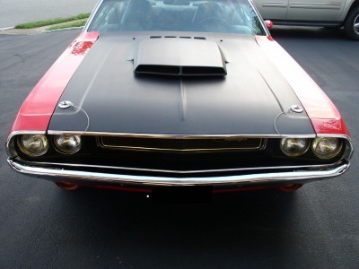 The floor and trunk pans are the originals and solid and have never been replaced. The trunk contains the correct jack, space saver spare and reproduction inflator bottle. The factory fiberglass hood is in great shape and has the typical “bowing” caused by the springs. The chrome bumpers, stainless trim and side marker assemblies are all excellent. The “CHANDLER” Dodge nameplate was restored and is intact on the rear spoiler.