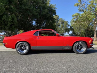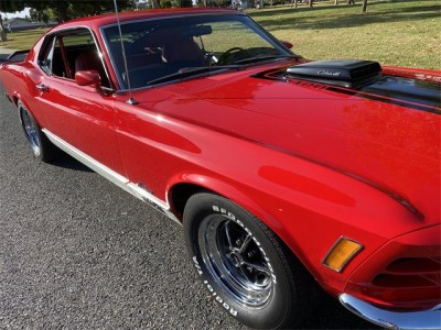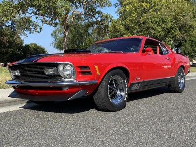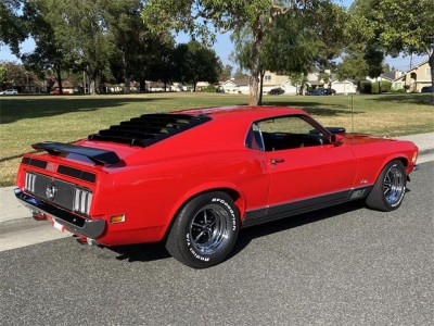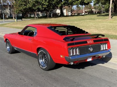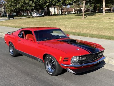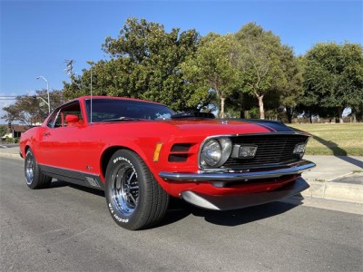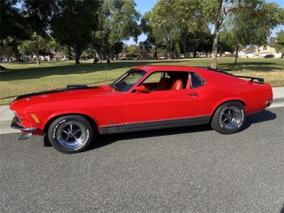 1970 Ford Mustang Mach 1 428 Ram Air Super Cobra Jet with original 4 speed and 3.91 Drag Pac. One of one with this combination, complete with De Luxe framed Marti Report. Equipped with power front disc brakes, close ratio transmission, Traction Lock rear axle, louvers, rear deck spoiler, black hood stripes, AM radio, tinted glass, tachometer, rim blow steering wheel and more. This beautiful Bright Red with Vermilion Clarion Knit vinyl seats Mach 1 has gone thru a 10-year rotisserie restoration where all numbers, chalk marks and paint daubs were carefully noted during tear down to then be reapplied. Details such as the week, day, shift and initials of the technician building the Rug manual transmission were saved! The previous owner decided to go with a color matched floor so the bottom is as beautiful as the top! Since the whole car was restored back to better than new, he reset the odometer and the car only has 811 miles since rebuilt. The original block was drag raced back in the day so it has been replaced with another 428 block. The original CJ heads are retained with the original exhaust manifolds. SCJ Oil cooler is in place as are the dual side by side horns. This car has a stunning paint job in its original color with a deep clear coat that has been sanded with 2500 grit and machine buffed to an incredible luster. Interior is impeccable with all original colors. Trunk, engine bay, undercarriage are all of equal high quality and the Magnum 500 wheels with BFG tires are brand new. Your head will be thrown back in the seat from the awesome power of this machine as you easily shift thru the gears and there is plenty of stopping power from the front disc brakes. There are not many Super Cobra Jet R codes out there and this one turns heads wherever it goes! Feel free to contact me for more info and pictures. Thank you for looking!