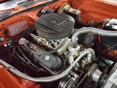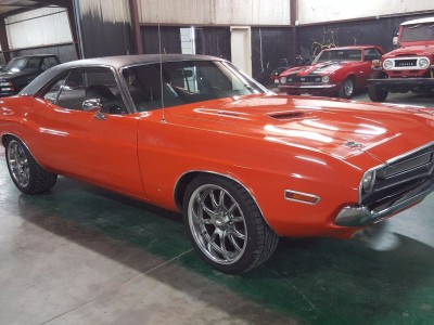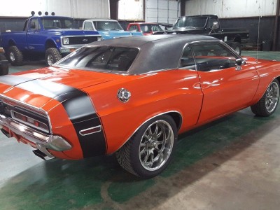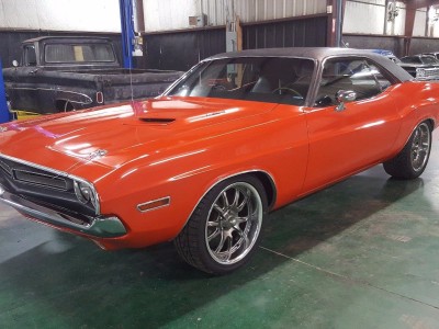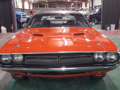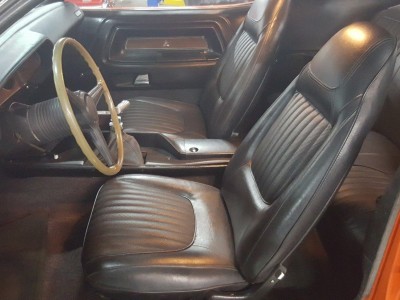 1971 Dodge Challenger. Equipped with 727 automatic transmission, power steering, power disc brakes and 8-3/4 rear end. (This is not an A/C car). Finished in it`s original Hemi Orange color. The body is solid and the paint is good, driver quality with a nice shine. The black interior looks great and has no signs of rips or tears. The 340 engine runs great. It has headers, aluminum intake, Holley carburetor and nice sounding cam. Transmission shifts great and the brakes feel good. Brand new tires mounted on new 18" wheels.