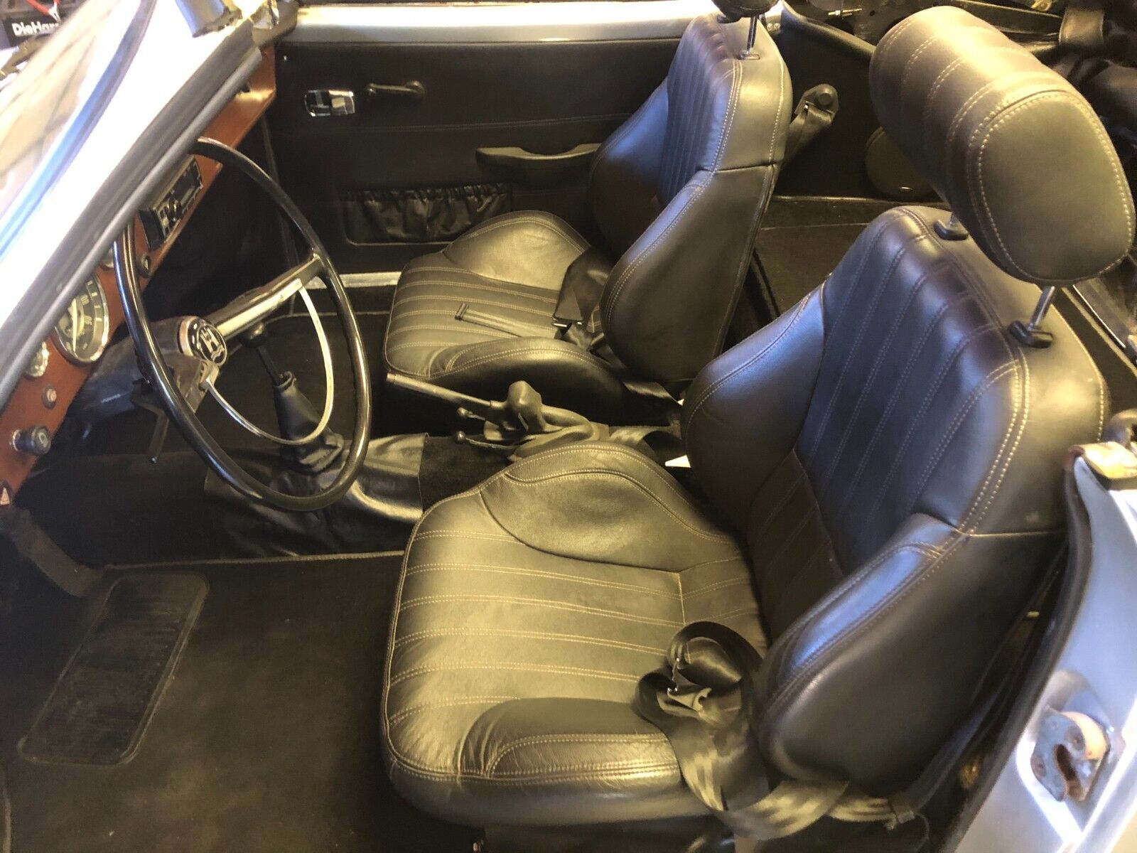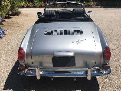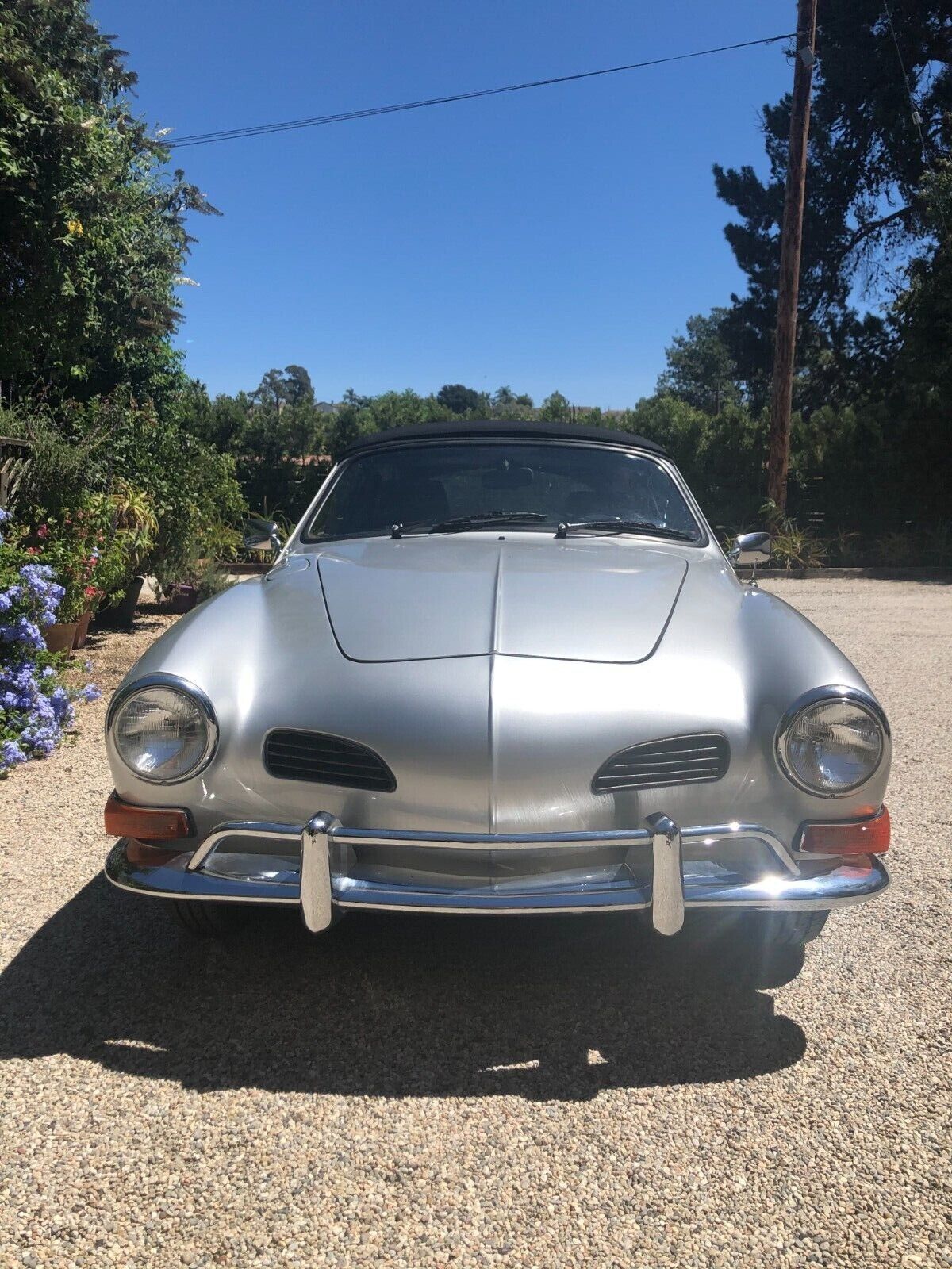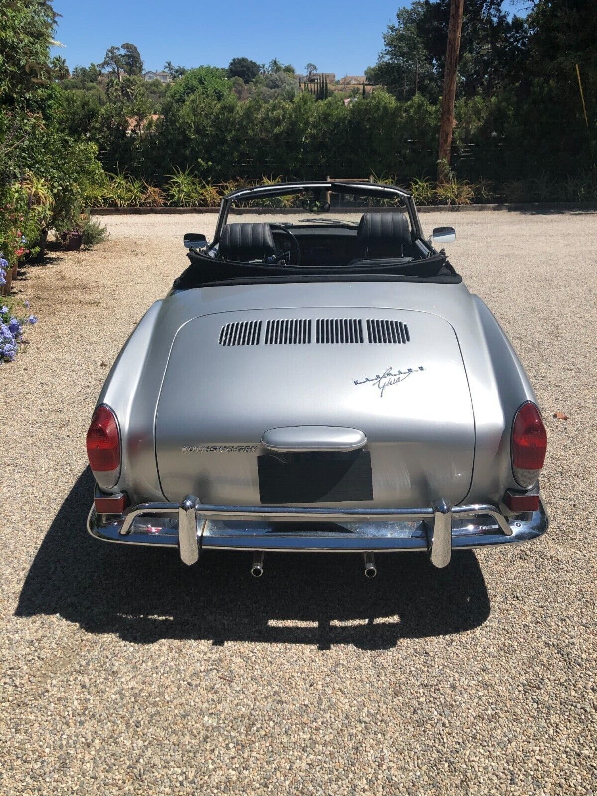 Vintage 1971 Karmann Ghia for Sale. Beautiful Silver Paint Job with custom interior and convertible top. Engine has recently been rebuilt (Bored to 1766cc) and has a Free Flyer 4 speed transaxle installed. Also has twin Weber carburetors, new clutch, rebuilt front end suspension along with sound deadening insulation installed under the carpets and inside side doors. Sports custom mag wheels and heavy duty custom car cover.