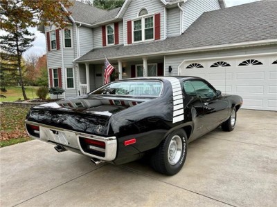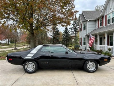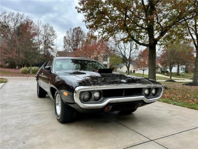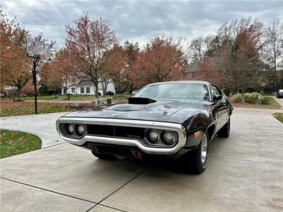 Stunning 1972 Plymouth Road Runner with factory Air Grabber hood and matching‑numbers 400ci 4‑barrel engine paired with 3‑speed manual transmission. Two original broadcast sheets! Extremely original car with one older repaint to Formal Black (originally Petty Blue). Runs and drives beautifully