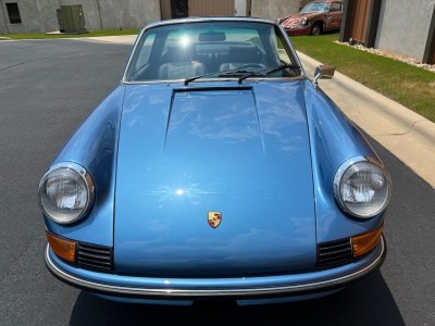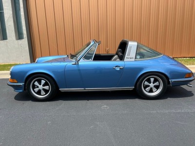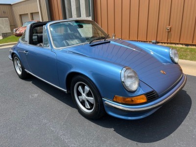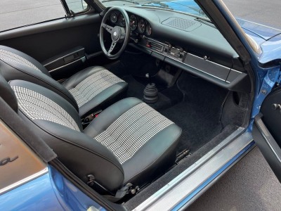 Restored Original Gemini Blue Metallic over Black Leather with Houndstooth 1973.5 911T CIS 5-Speed Manual Targa