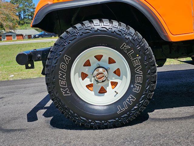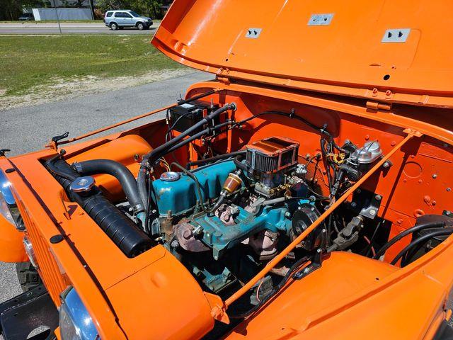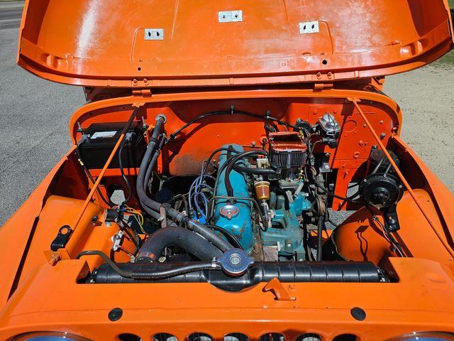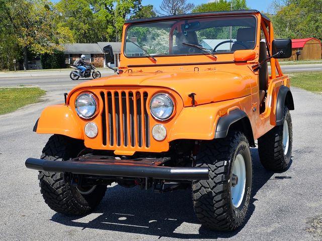 Get ready to hit the trails and explore the great outdoors in this rugged and iconic 1974 Jeep CJ-5! Finished in a vibrant shade of orange, this classic off-road vehicle is as eye-catching as it is capable. Under the hood, youll find ol reliable - a powerful 258 cubic inch inline six-cylinder engine thats paired with a smooth-shifting 3-speed manual transmission. With its lifted suspension, Kenda M/T tires, and impressive ground clearance, this Jeep is ready for any adventure you can throw its way. The exterior of this CJ-5 is in excellent condition, with classic Jeep styling cues like the seven-slot grille, round headlights, and squared-off fenders. The removable bikini top and fold down windshield provide the ultimate open-air driving experience, while the bold orange paint job ensures that youll stand out from the crowd. Inside the cabin, youll find a functional and utilitarian interior thats perfect for off-road driving. The tan marine grade vinyl seats are easy to clean and maintain, while the simple dashboard layout puts all the necessary controls within easy reach. Overall, this 1974 Jeep CJ-5 is a classic example of a rugged and capable off-road vehicle. Its perfect for anyone who loves adventure, exploration, the great outdoors, and comes beach ready with matching towels and beach balls.