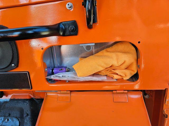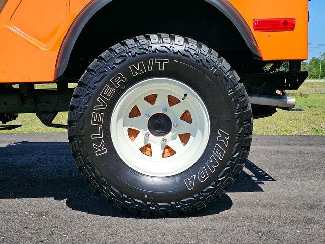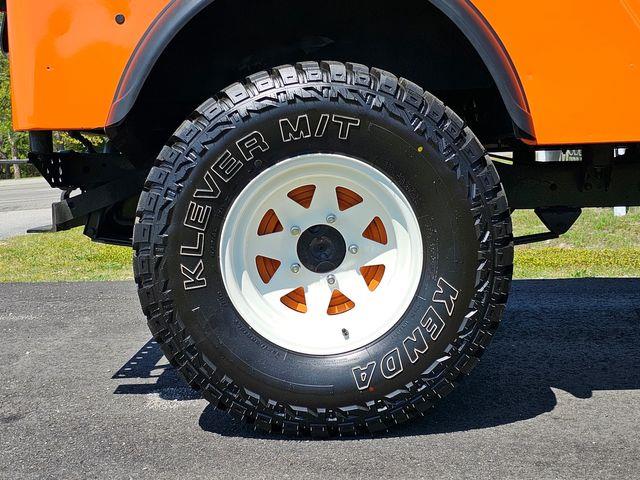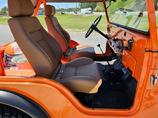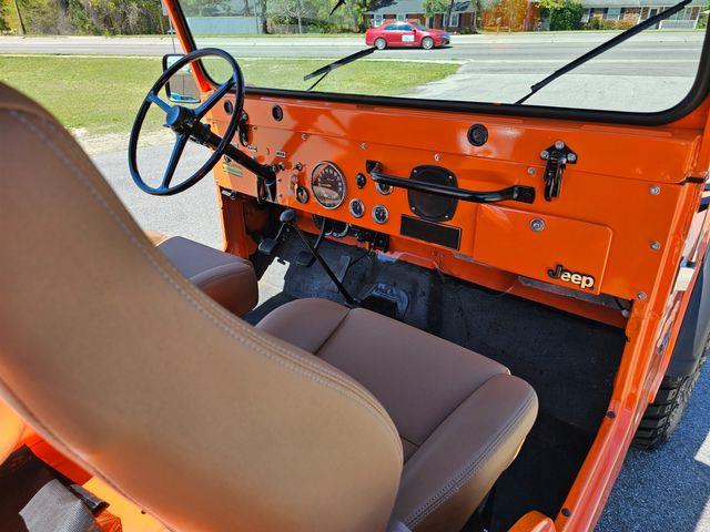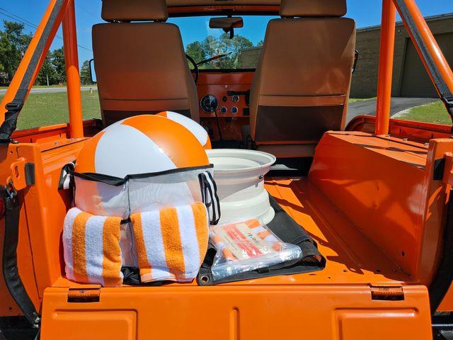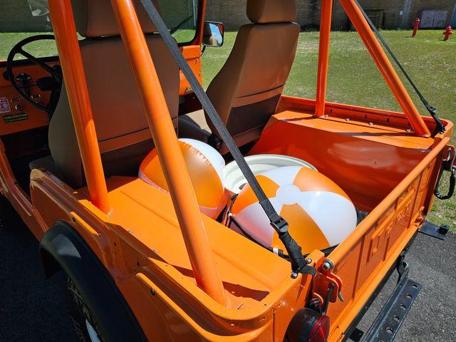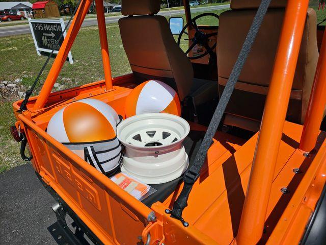 Get ready to hit the trails and explore the great outdoors in this rugged and iconic 1974 Jeep CJ-5! Finished in a vibrant shade of orange, this classic off-road vehicle is as eye-catching as it is capable. Under the hood, youll find ol reliable - a powerful 258 cubic inch inline six-cylinder engine thats paired with a smooth-shifting 3-speed manual transmission. With its lifted suspension, Kenda M/T tires, and impressive ground clearance, this Jeep is ready for any adventure you can throw its way. The exterior of this CJ-5 is in excellent condition, with classic Jeep styling cues like the seven-slot grille, round headlights, and squared-off fenders. The removable bikini top and fold down windshield provide the ultimate open-air driving experience, while the bold orange paint job ensures that youll stand out from the crowd. Inside the cabin, youll find a functional and utilitarian interior thats perfect for off-road driving. The tan marine grade vinyl seats are easy to clean and maintain, while the simple dashboard layout puts all the necessary controls within easy reach. Overall, this 1974 Jeep CJ-5 is a classic example of a rugged and capable off-road vehicle. Its perfect for anyone who loves adventure, exploration, the great outdoors, and comes beach ready with matching towels and beach balls.