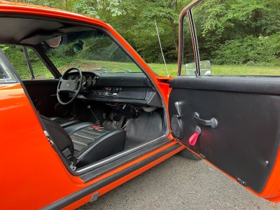 1976 Porsche 912e, 4-cyl. 1971cc/86hp is very well sorted and recently restored. The car has been repainted Continental Orange from the original Guards Red by the original owner. The interior is black.