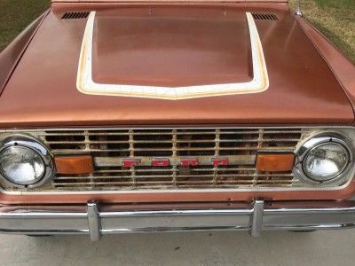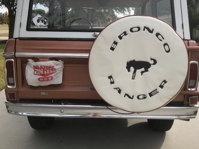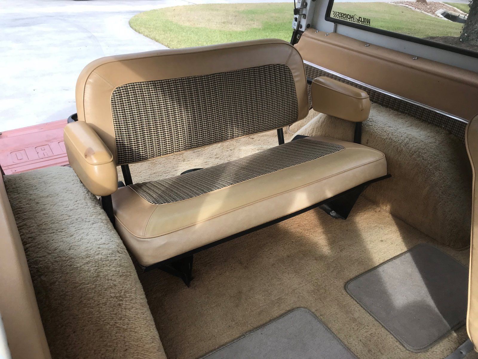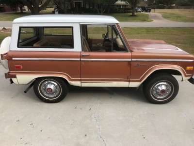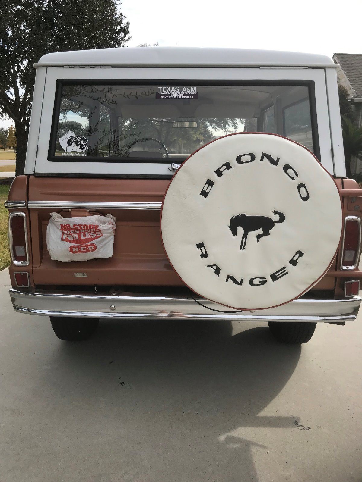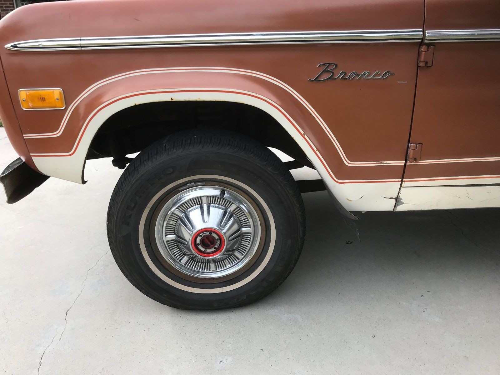 All original 1976 Ford Bronco Ranger package. Has factory A/C, power brakes with factory front discs, power steering. I am at least the 3rd owner so unsure of actual mileage but I have no reason to believe it is not the 83,000 shown. Runs very solid! All original! I even have the original key chain and keys from the dealer in Limon CO. I have owned for the past few years and installed a new headliner and dash pad cover. Recently replaced brake booster, spark plugs and carb. Replaced steering wheel with OEM replacement and removed smog pump but I still have the original steering wheel, carb and smog pump to go with the vehicle. Replaced the tire cover with a re-make but also have the original cover to convey. AM radio does not work but I have another used one to also go to the buyer. Fuel gauge does not work, No rust but does have some wear and tear, paint is patena-ed and decals weather cracked. the hub caps have a few dents and the "red centers" cracked on a couple of them. The right rear fender in front of the wheel slightly bent and the tailgate slightly bent in from a possible impact or push on the tire but does not affect ability to open tailgate, bumper corners slightly bent. On the interior the seats and carpet have 50 years of wear and tear. A PO has possibly repainted the top. PO had a soft top (not salvageable) with the vehicle and cut a slot on the wiper motor cover to fit the support bar. Tires in great shape but the suspension/shocks soft after 50 years. Driver "adjustable" mirror has a crack.