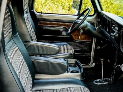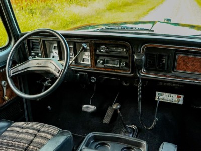 The interior of this Bronco is mostly original. The star of the show is the factory high back captain’s chairs that show very well for their age! The carpet, door panels, center console and dash pad also appear to be original. We have added a Retrosound Bluetooth Radio to the factory dash.