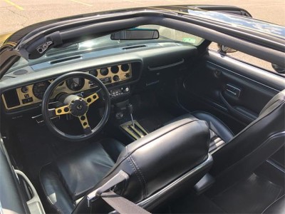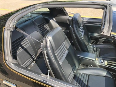 1981 Pontiac Turbo Trans Am 4.9L WS6 with T-Tops and 4 wheel disk brakes. 1981 was the final year of the second generation body style made famous in the “Smokey & the Bandit" movies. This beautiful iconic muscle car has had a complete restoration from stem to stern about 3,200 miles ago and looks absolutely fantastic. The vehicle has just over 92K original miles on the chassis and original numbers matching powertrain. The body is laser straight and the doors align and close without any sag. The deep black paint is show quality and pops in the sunlight with a touch of gold metallic. The motor was completely gone through and everything was either replaced or restored. This car has no exhaust, fluid, or oil leaks. Every gasket and seal is new to include BOP's Viton 1 piece rear main seal and oil pan gasket. All of the hoses, fuel, and vacuum lines have been replaced. The motor has a new radiator, 180 degree thermostat, as well as new alternator, water, fuel, power steering, and oil pumps. The motor is run with 6 quarts of Amsoil ZROD fully synthetic oil with zinc to help keep the temps down and the turbo from cooking. The car wears all new brakes to include a new booster, calipers, discs, pads, and brake lines. The suspension is completely new and includes shocks, struts, springs, and bushings. The original turbo wheels were completely restored and wear new BF Goodrich 245/60R15 white letter radials all the way around. The TH350 transmission was completely rebuilt along with the original performance ratchet shifter. A Hurst racing solid shift cable was added and the transmission provides firm, positive shifts. The rear end maintains its original 3:08 gear set and was inspected and given new gear case lube prior to being powder-coated. A new fuel tank was installed and strapped up to a freshly undercoated bottom. A 2.5" downpipe was attached to the turbo which connects to a custom 2.5" Borla XR-1 Multicore exhaust with dual 2.5" tips. The car sounds fantastic and has no cabin drone whatsoever. The factory quadrajet carburetor was sent to Cliff's for a performance rebuild and was given the proper components to run modern fuel and modified to allow the secondary doors to fully open. A new K&N filter rests inside the air cleaner and the cold air ductwork has all been updated with new fittings and properly connected to the air snorkel in the fender well. The turbo was given a performance rebuild and ceramic coating by renowned turbo builder G-Pop shop. The car is currently dialed in at about 12 lbs. of boost and runs very well. A boost controller has been placed into the turbo to wastegate line allowing the owner to easily adjust the boost level. The Turbo Charge Boost lights all work and light up in sequence as they should. The dash was sent out for restoration as was the gold gauge bezel and shifter plate. The black vinyl interior is all new to include front and rear seat covers, door panels, and trim. The carpets and vinyl mats are also new. A boost gauge has been added onto the lower console in front of the shifter. Double sided adhesive was used in order to avoid having to drill holes. The factory radio was upgraded with a modern board making the system blue-tooth compatible while providing the driver with an in-dash microphone and USB port. Kenwood speakers were added to deliver quality sound.